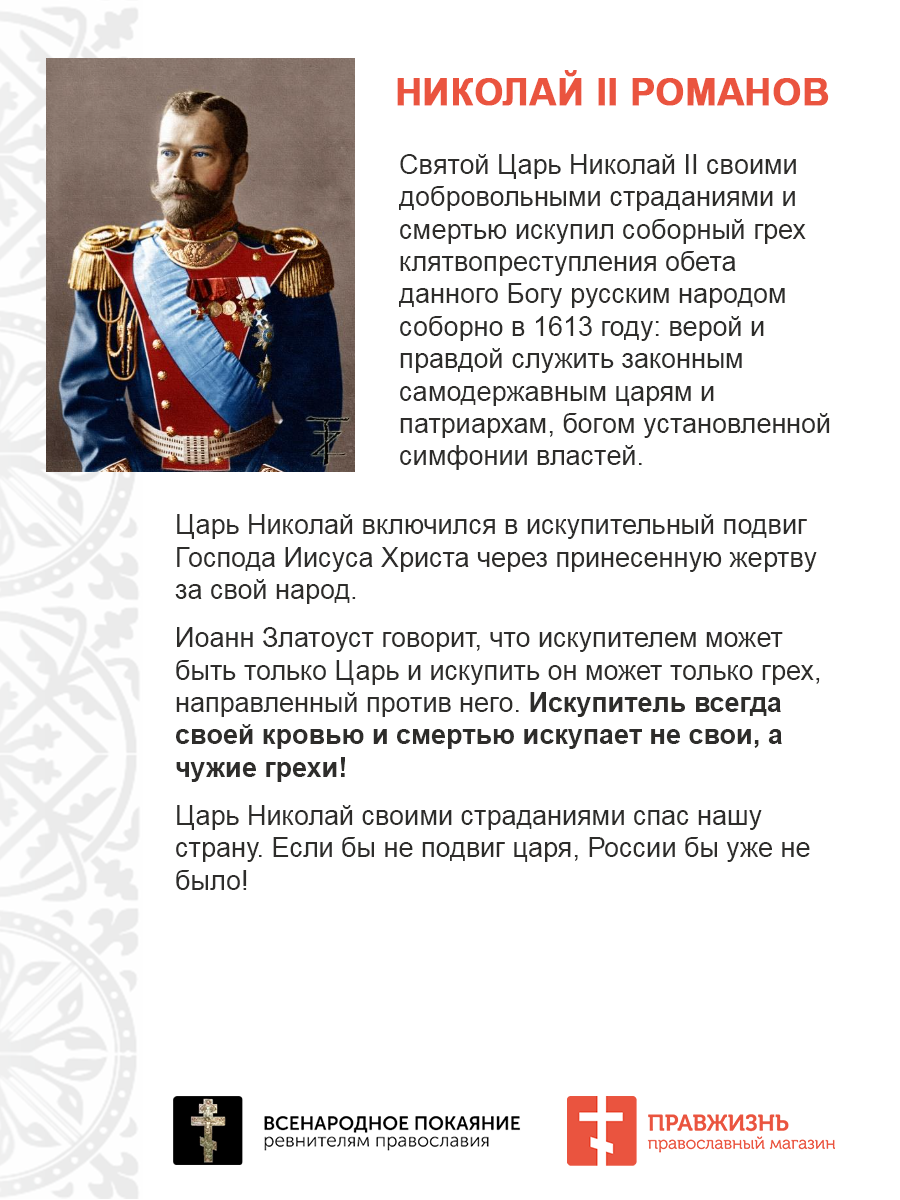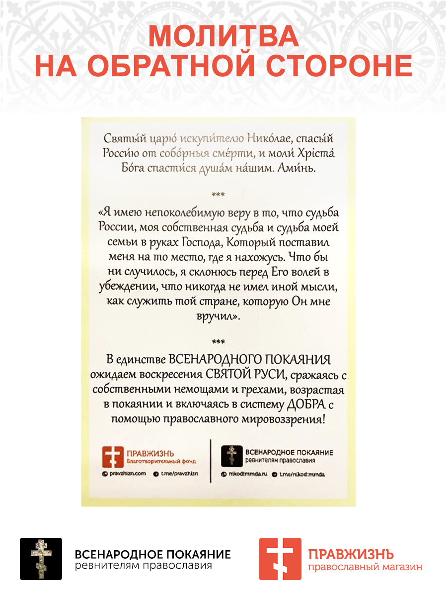 • Святой образ Царя Николая II — символ веры, духовного заступничества и покровительства;