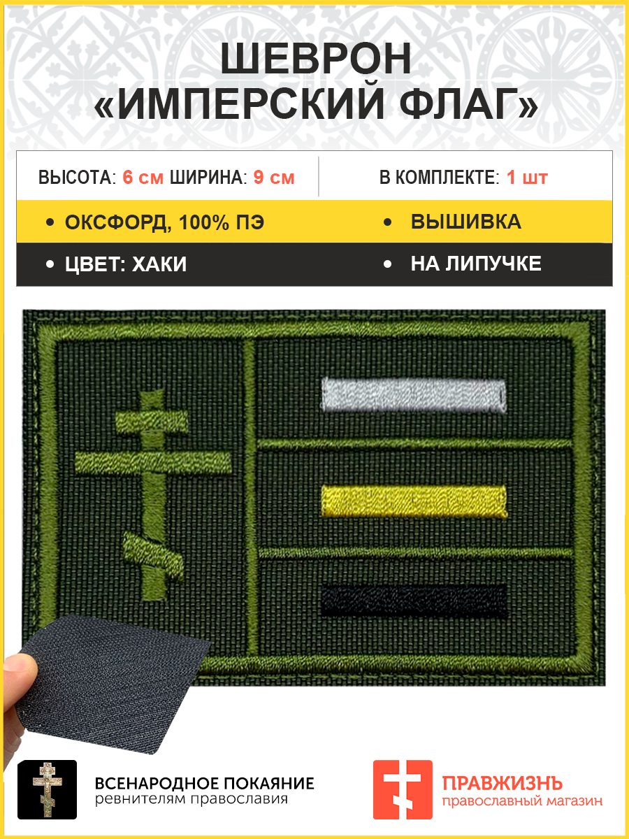 Имперский флаг, шеврон военный на липучке, материал оксфорд цвет хаки, нитка хаки, 6х9 см