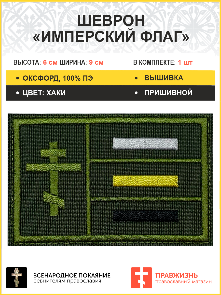 Имперский флаг, шеврон военный пришивной, материал оксфорд цвет хаки, нитка хаки, 6х9 см