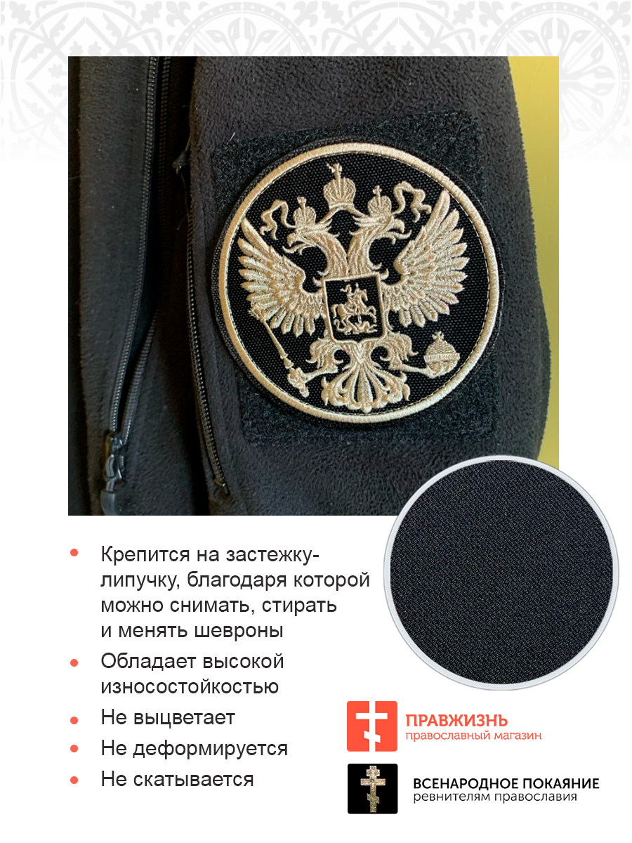 Имперский Герб, шеврон военный на липучке, материал оксфорд цвет черный, нитка топленое молоко, диаметр 9 см