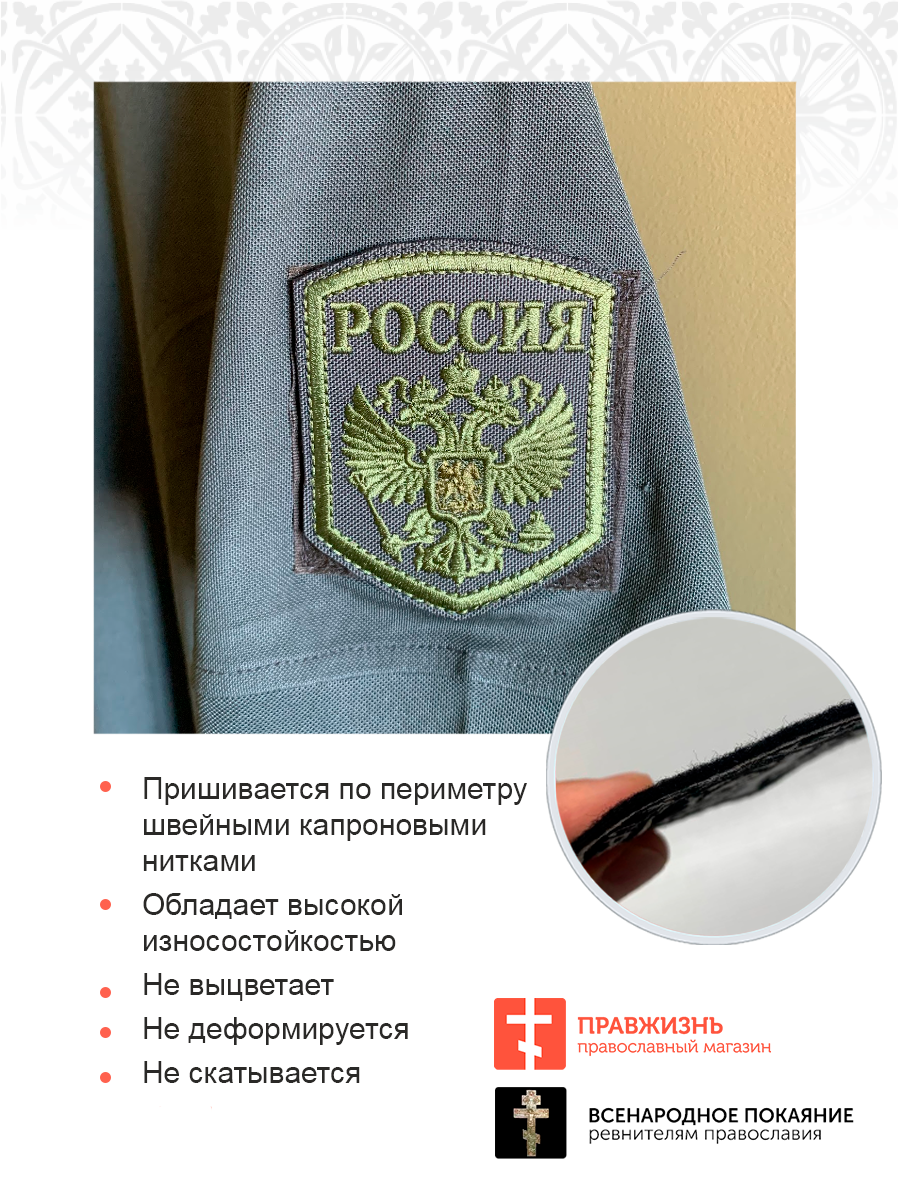 Имперский Герб, шеврон военный пришивной, материал оксфорд цвет хаки, нитка хаки, высота 9 см