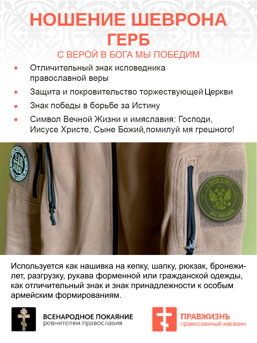Шеврон Герб С верой в Бога мы победим пришивной оксфорд хаки диаметр 9 см 1 шт