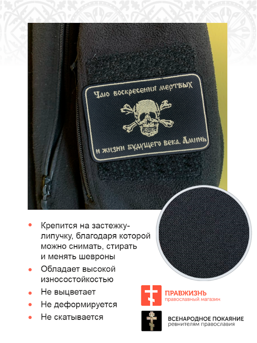 Шеврон Атамана Бакланова на липучке оксфорд черный/топ молоко 6х9 см 1 шт