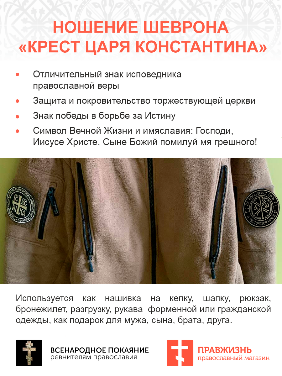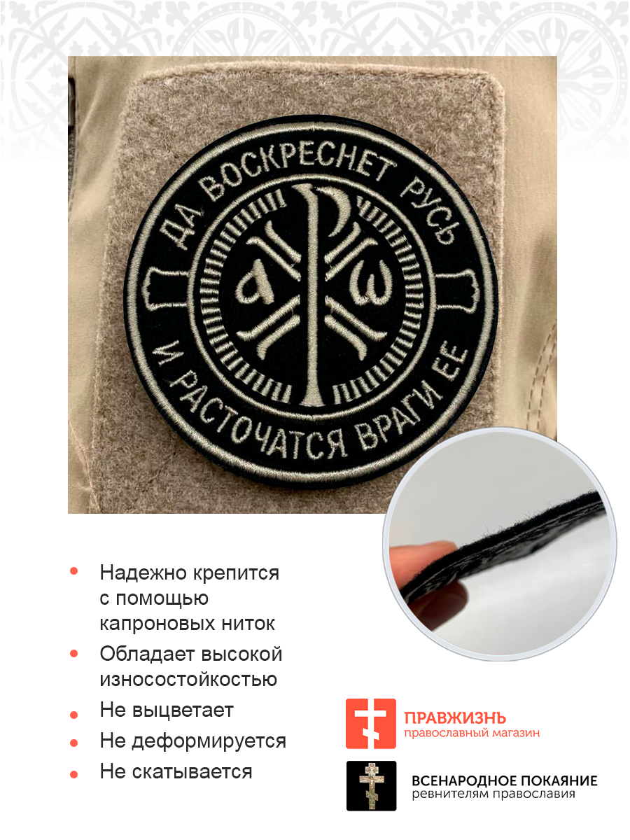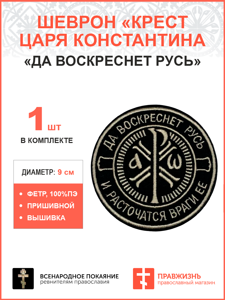 Крест Царя Константина "Да воскреснет Русь и расточаться враги ее", шеврон военный православный, пришивной, нитка топленое молоко, материал фетр, диаметр 9 см