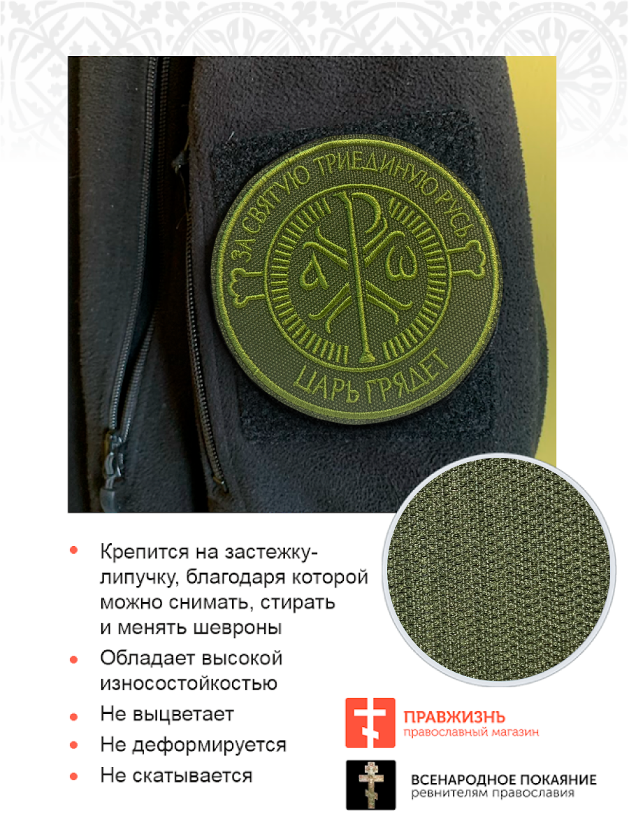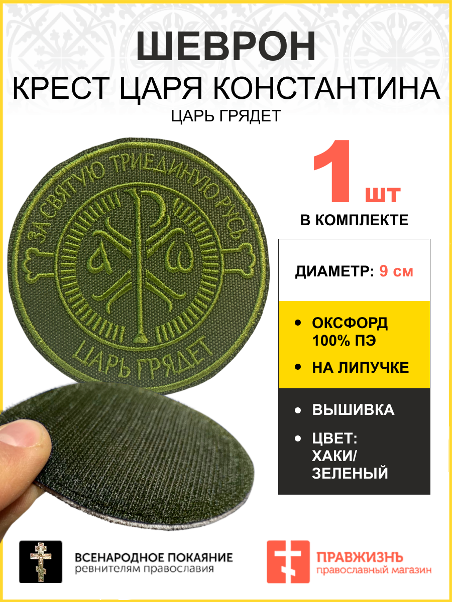 Шеврон Крест Царя Константина Царь грядет на липучке оксфорд хаки диаметр 9 см 1 шт