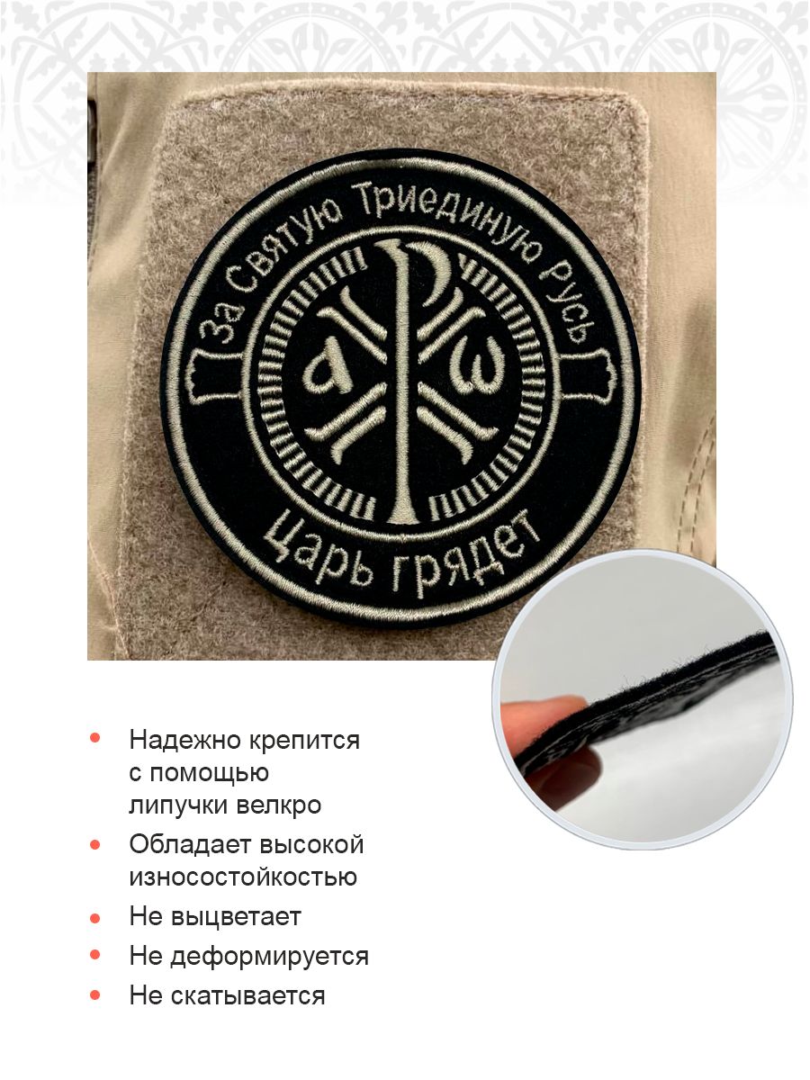 Крест Царя Константина За Святую триединую Русь Царь грядет", шеврон, на липучке ТМ, ФЕТР, диаметр 9