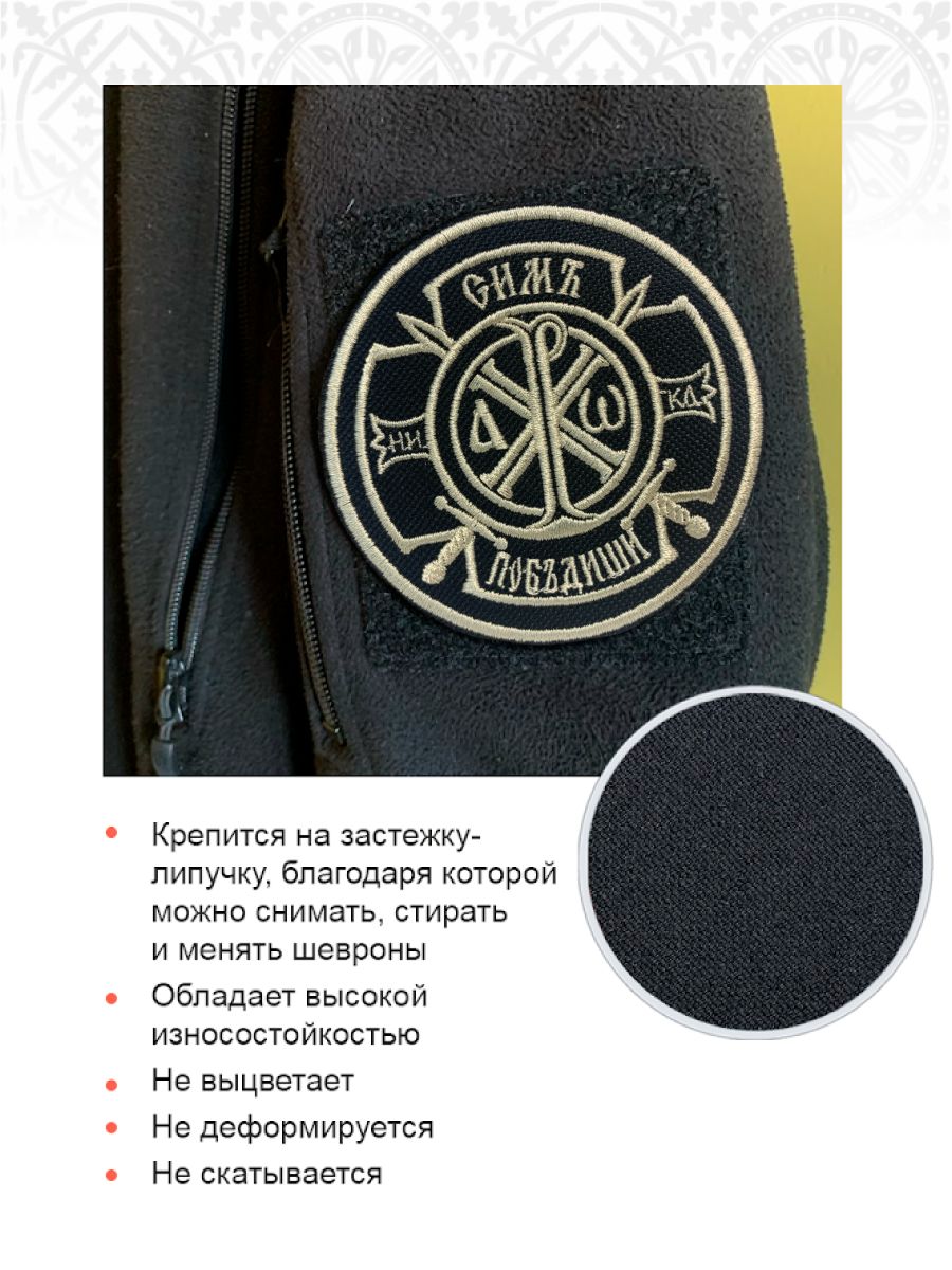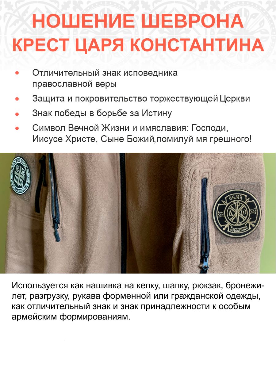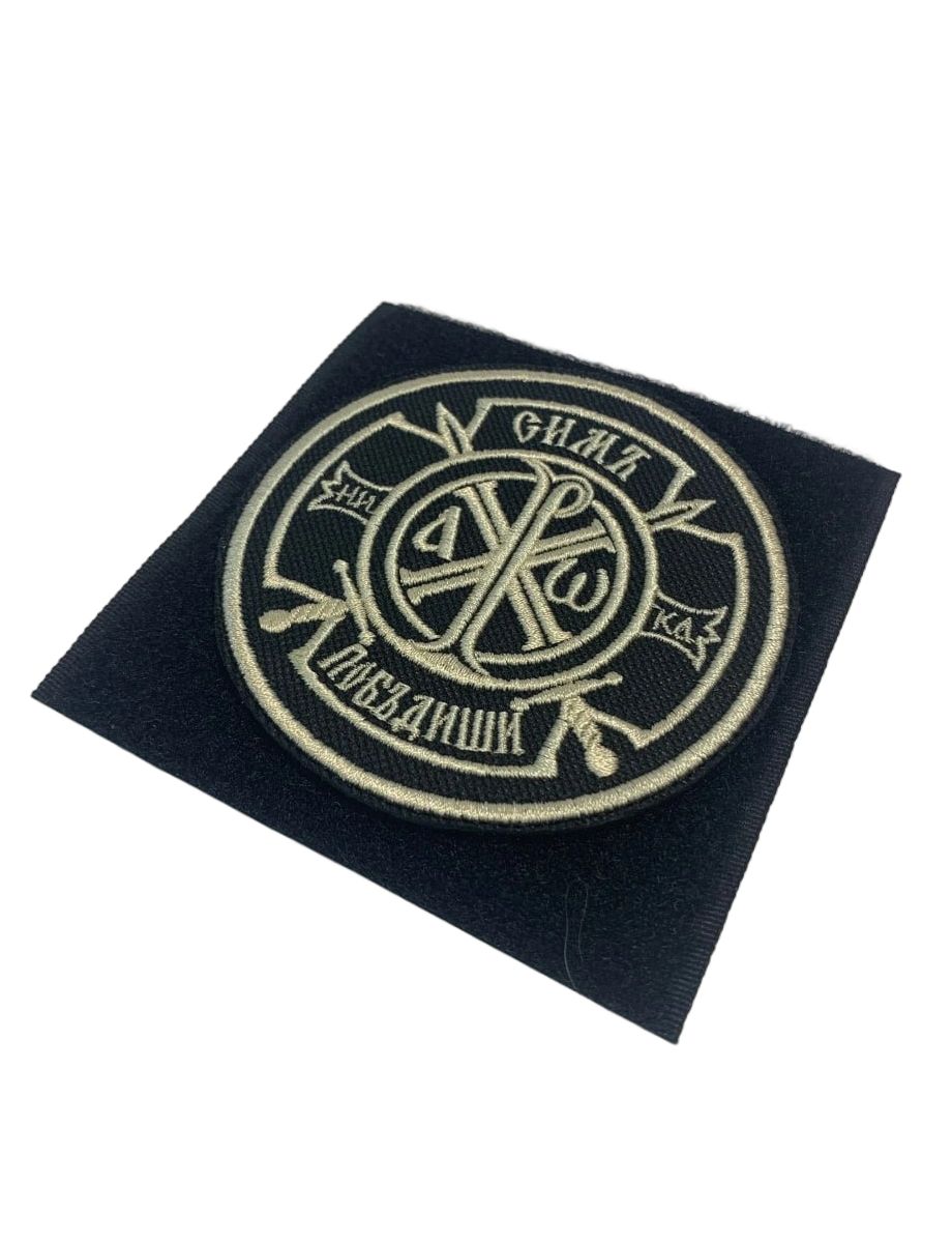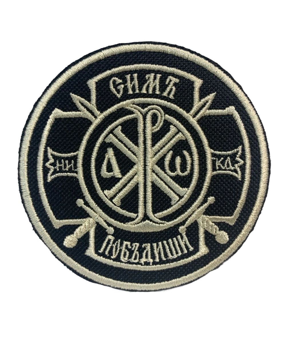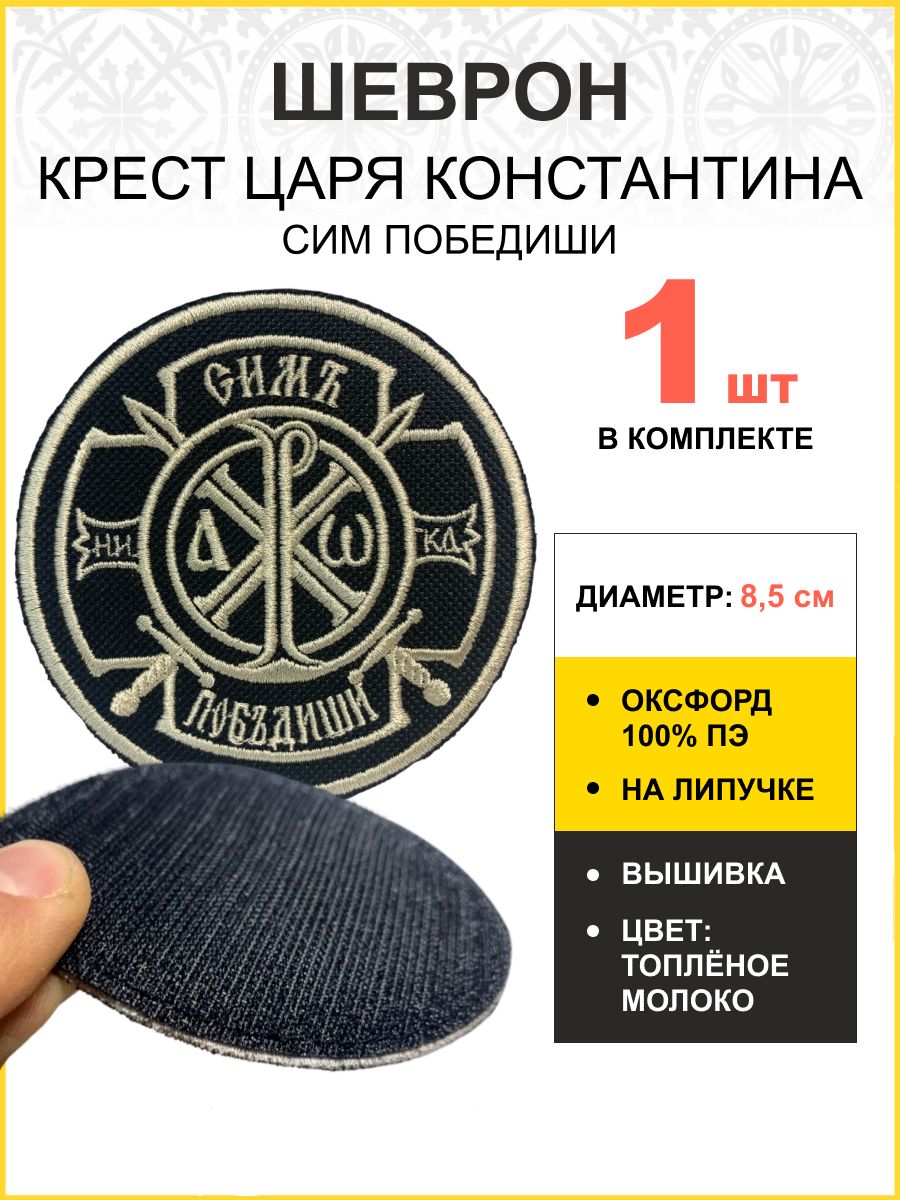 Шеврон Крест Царя Константина Сим победиши на липучке оксфорд черный/топ молоко диаметр 8,5 см 1 шт