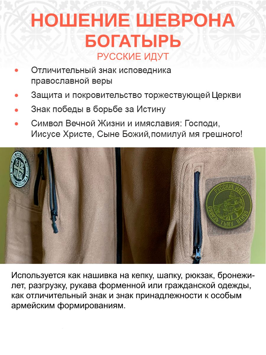 Шеврон Богатырь Русские идут пришивной оксфорд хаки диаметр 9 см 1 шт