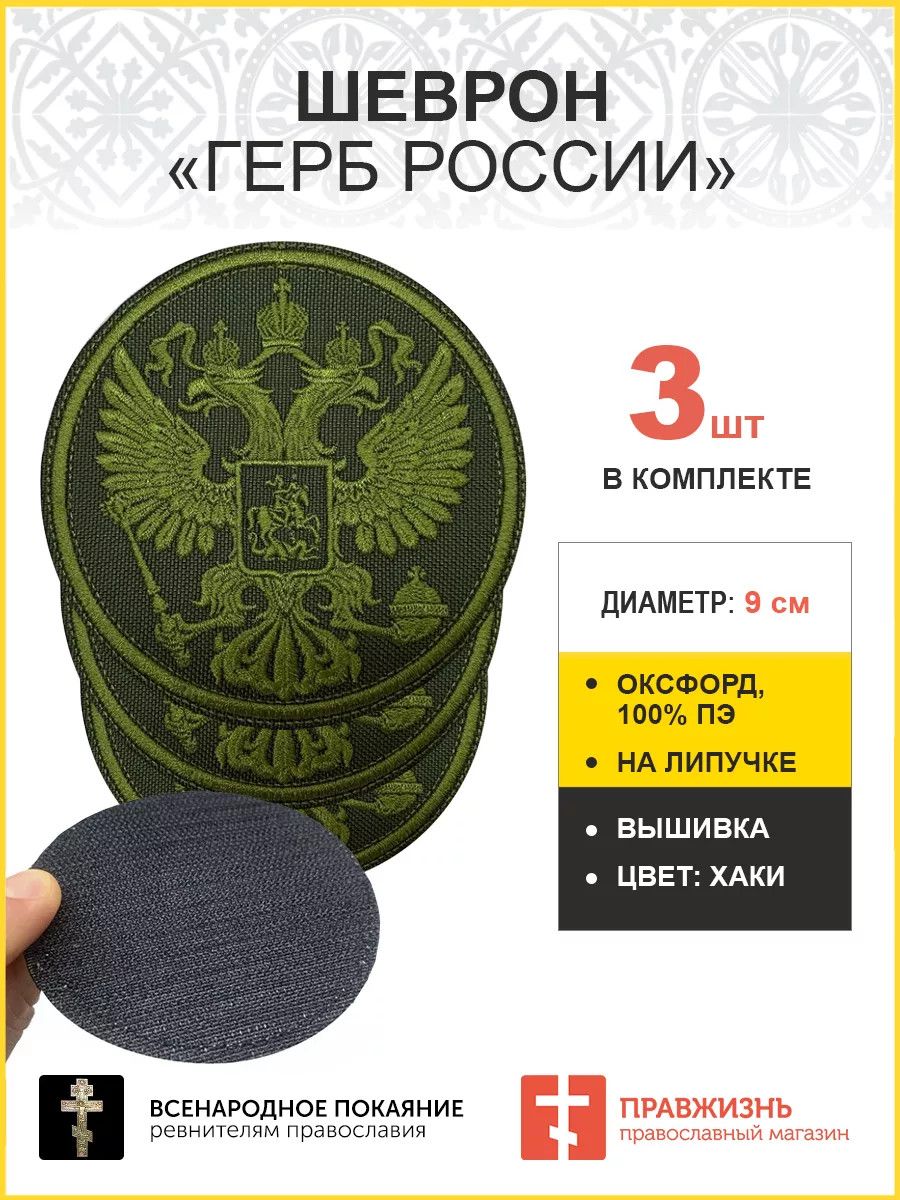 Имперский Герб, набор 3 шеврона, на липучке, нитка хаки, материал оксфорд цвет хаки, диаметр 9 см
