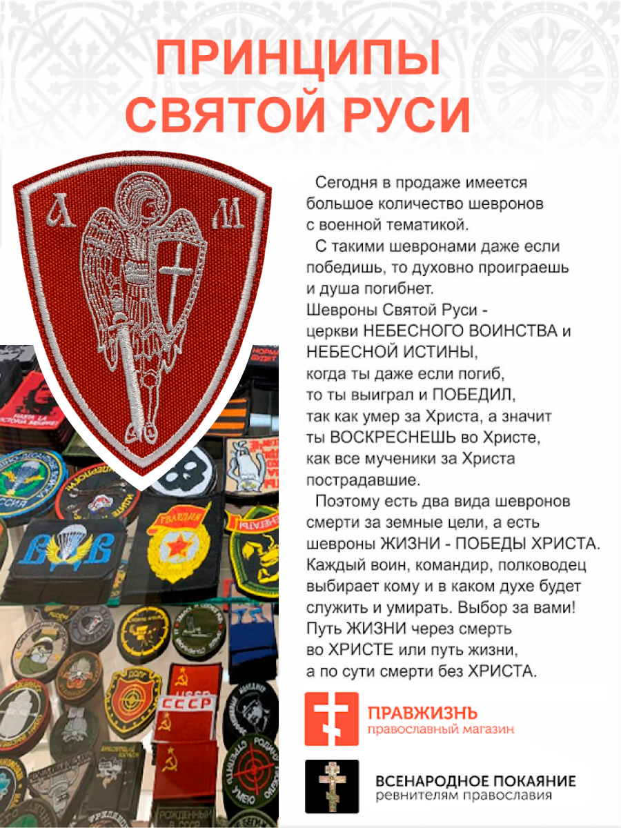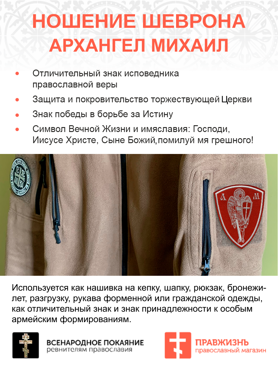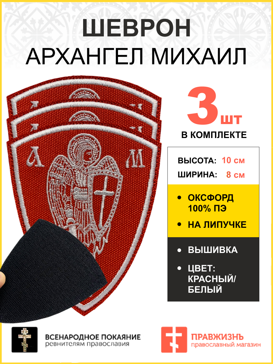 Набор шевронов Архангел Михаил красный/белый на липучке оксфорд высота 10 см 3 шт