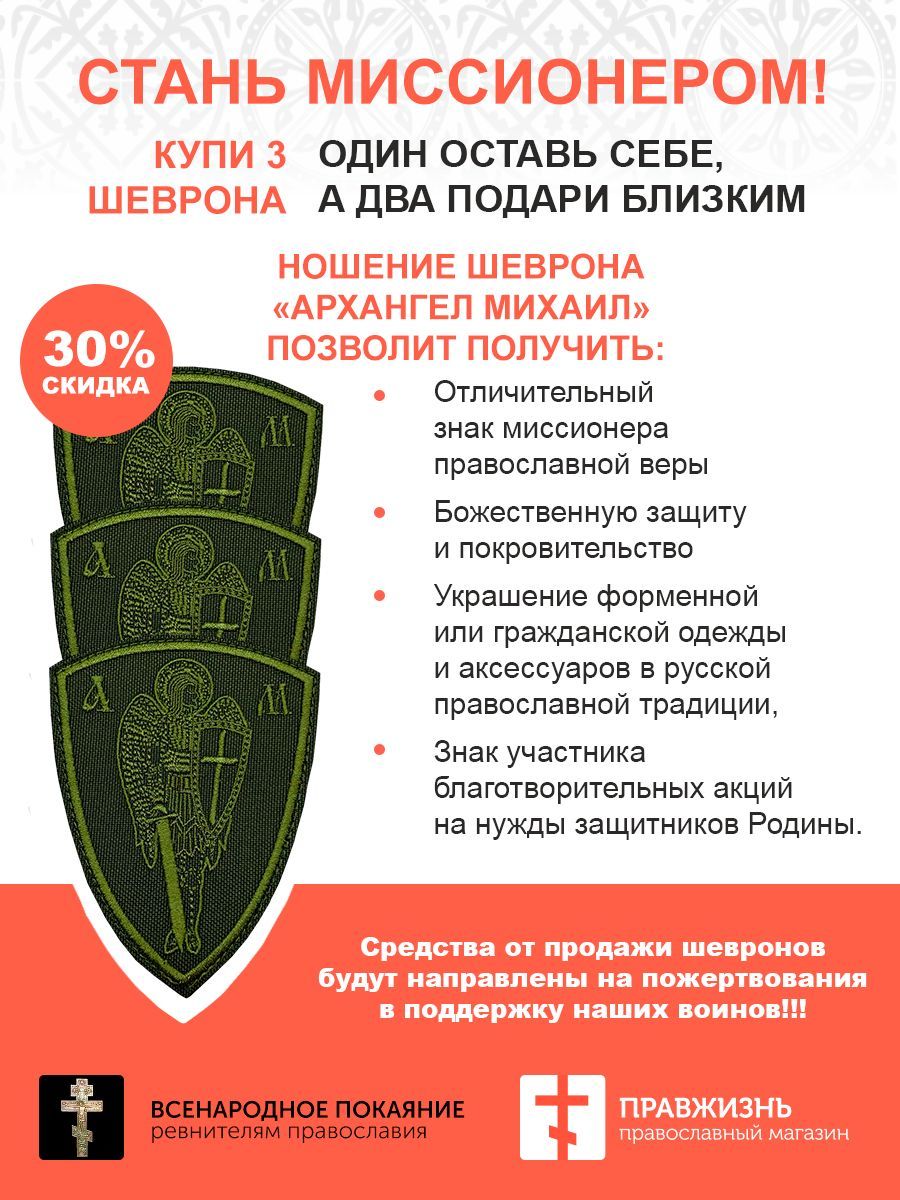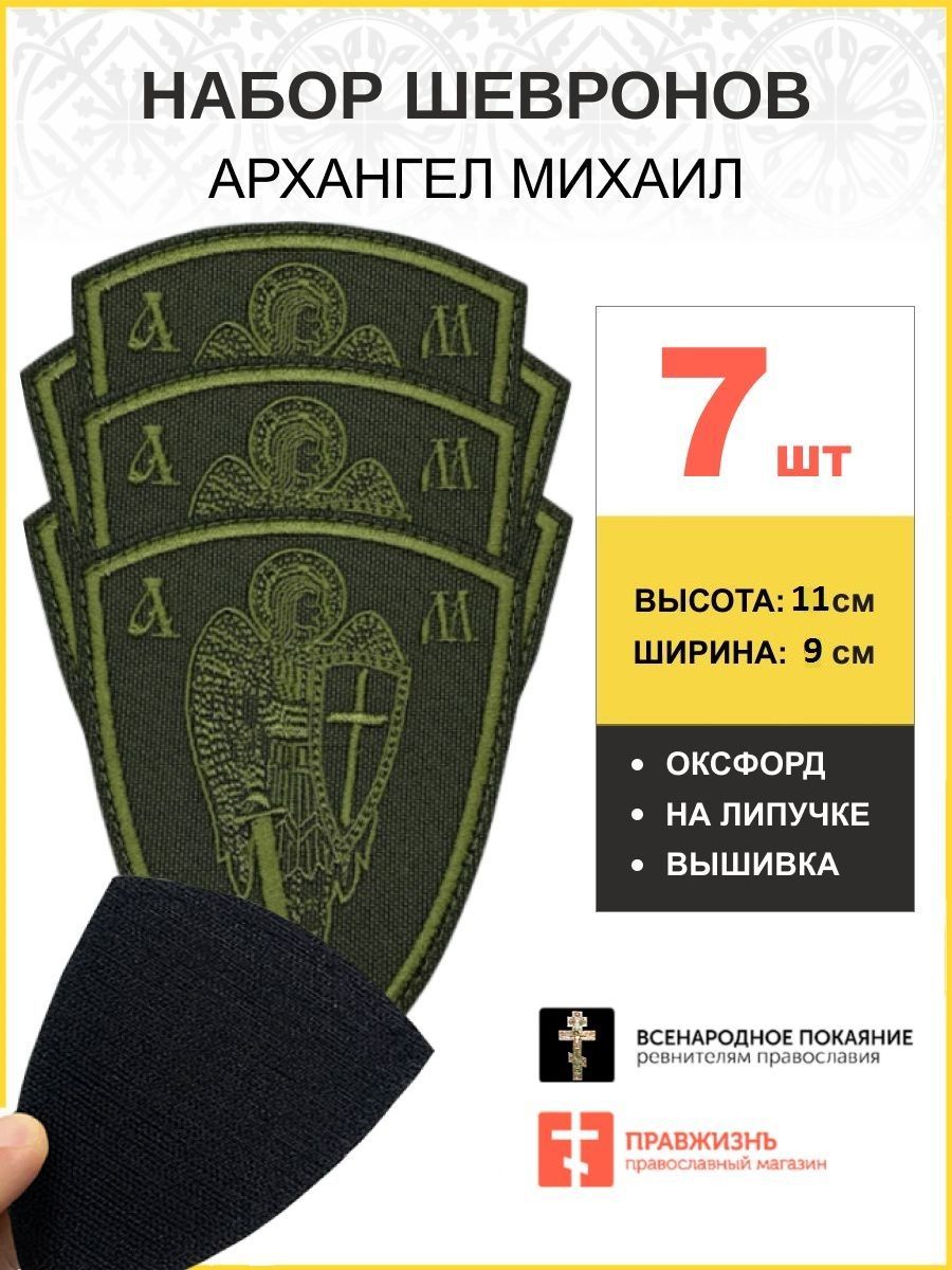 Набор шевронов Архангел Михаил оксфорд на липучке хаки 7 шт.