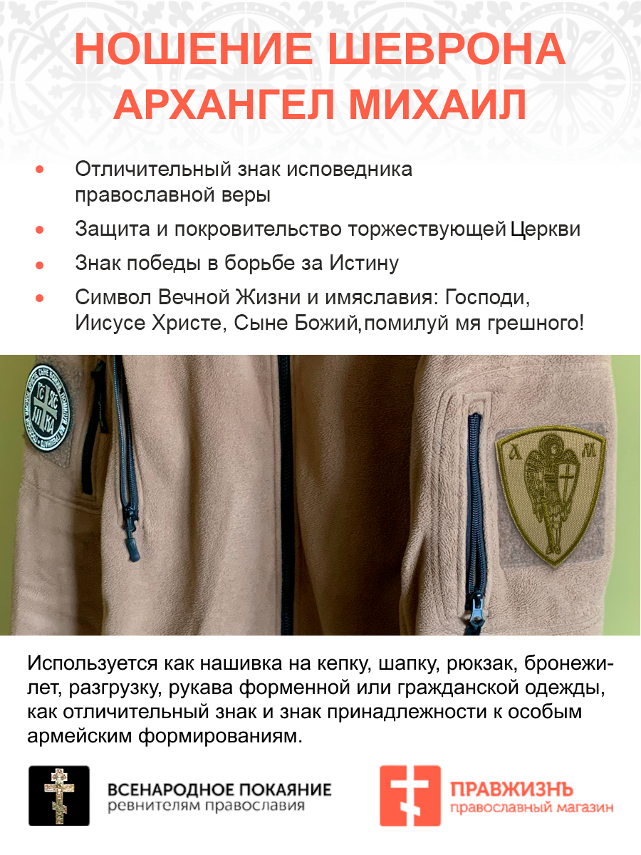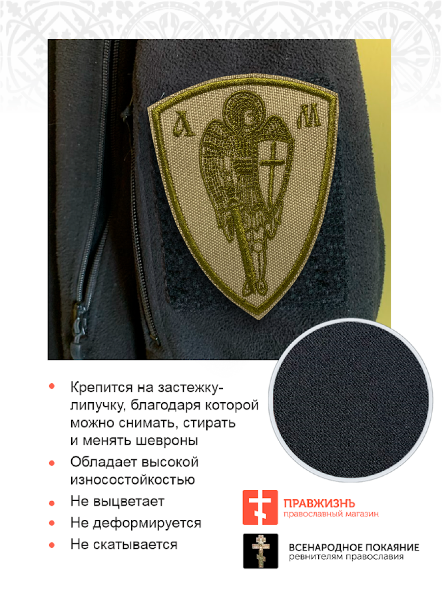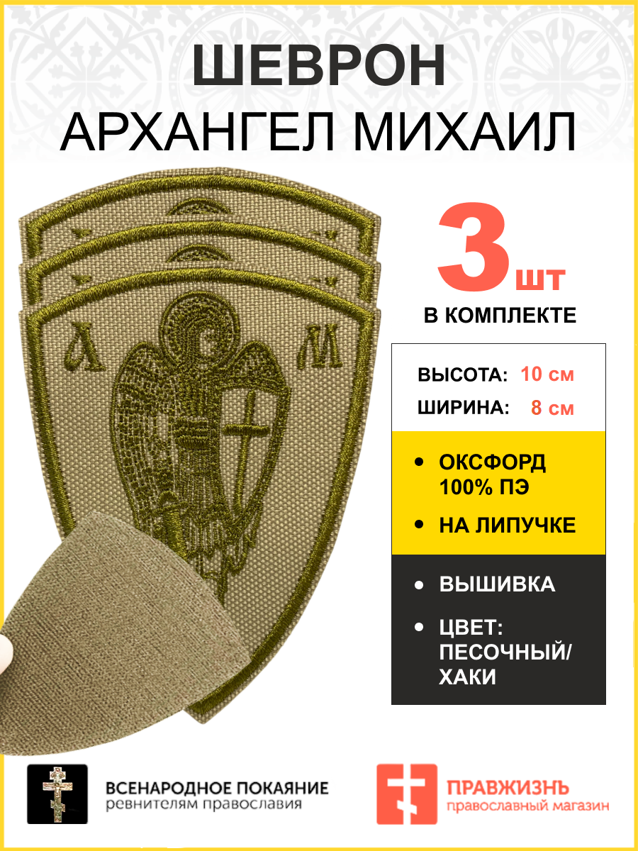 Набор шевронов Архангел Михаил песочный на липучке оксфорд высота 10 см 3 шт