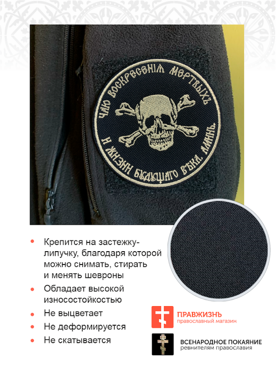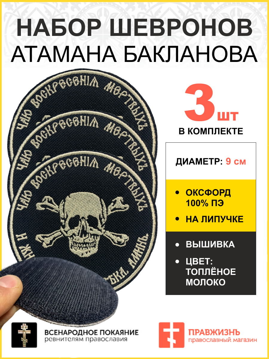 Набор шевронов Атамана Бакланова на липучке оксфорд черный/топ молоко диаметр 9 см 3 шт