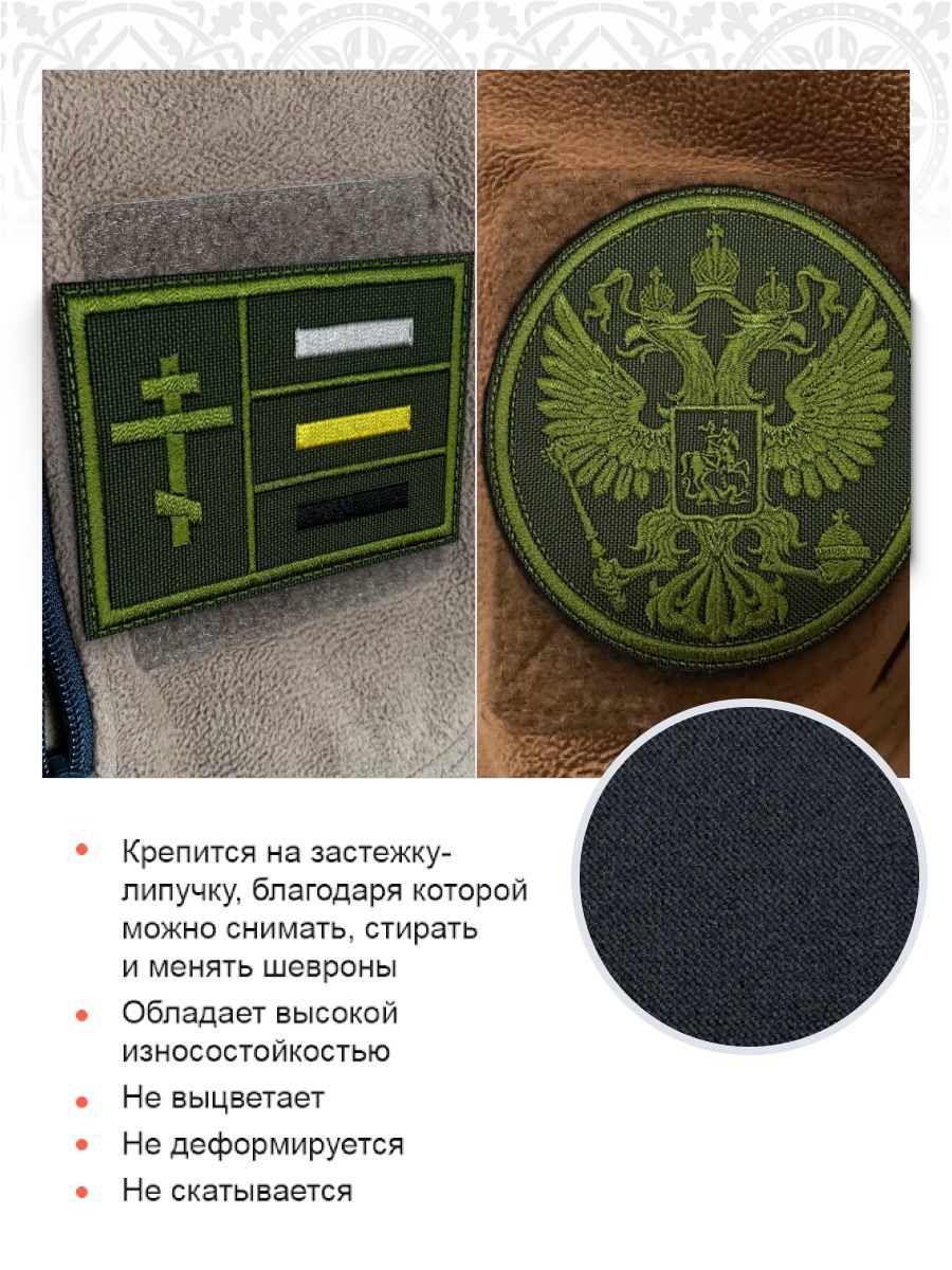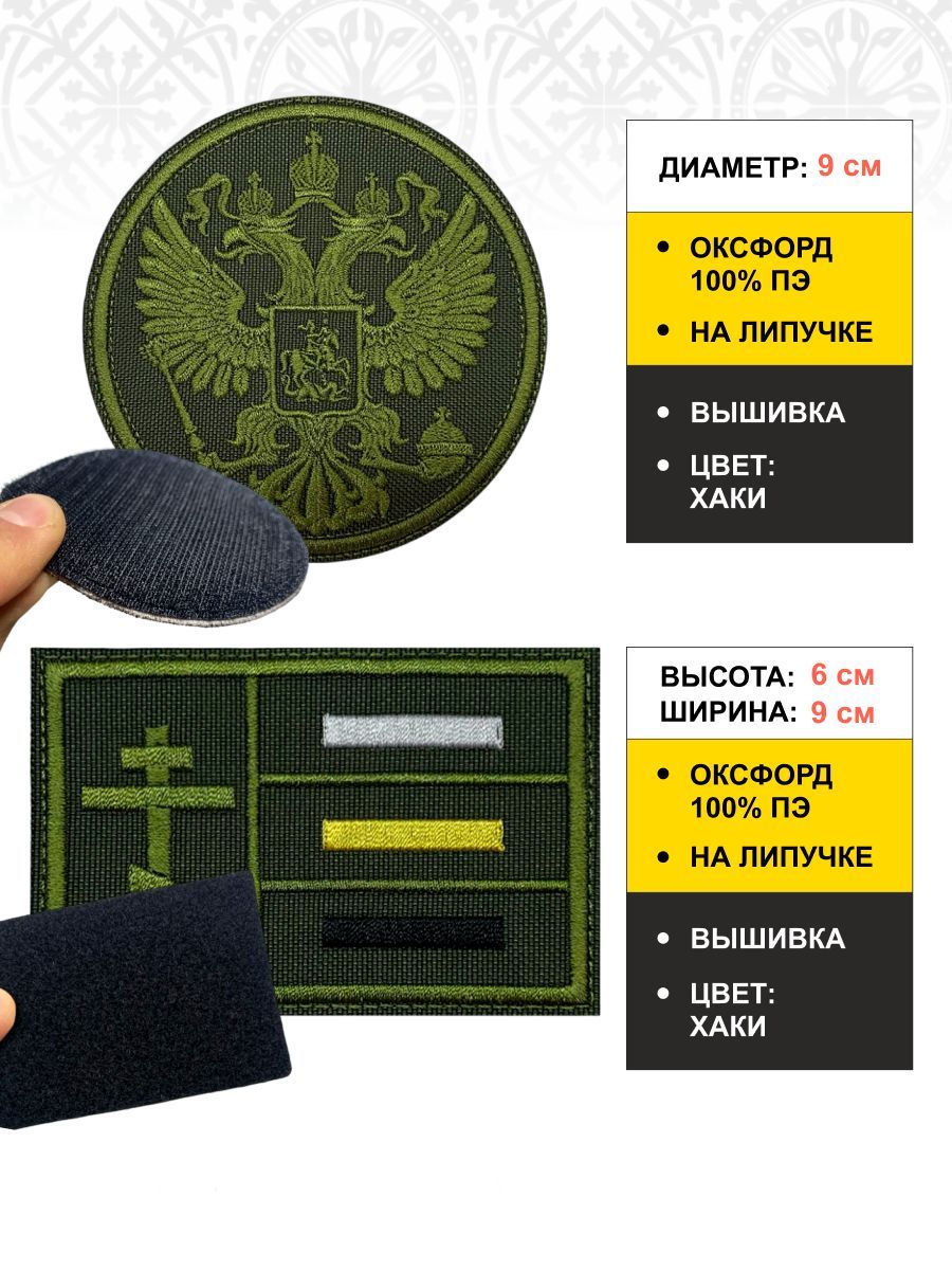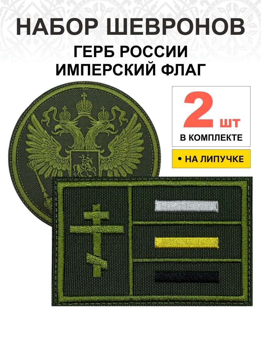 Набор шевронов ГЕРБ РФ диаметр 9 см+ ИМПЕРСКИЙ ФЛАГ 6х9 см, хаки, на липучке, оксфорд, 2 шт.