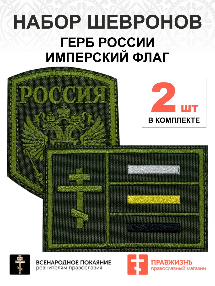 Набор шевронов ГЕРБ РФ высота 9 см+ ИМПЕРСКИЙ ФЛАГ 6х9 см, хаки, на липучке, оксфорд, 2 шт.