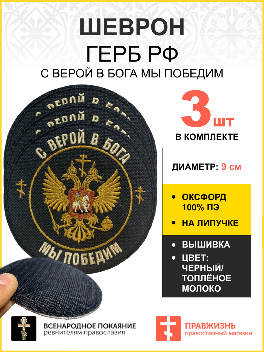Набор шевронов Герб С верой в Бога мы победим на липучке оксфорд 3 шт