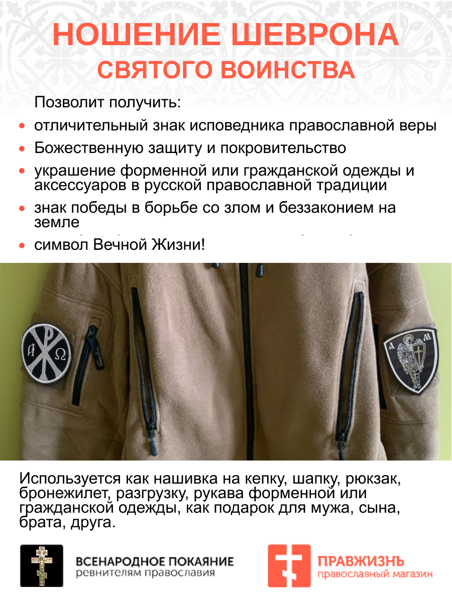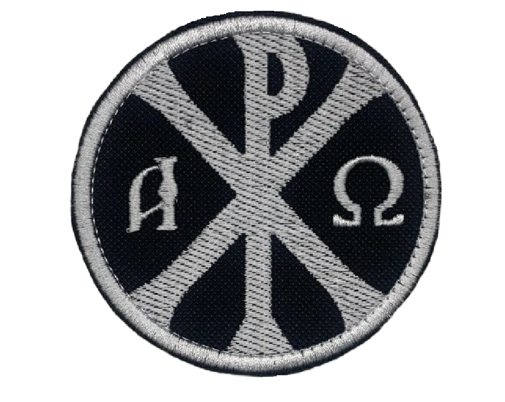 Набор шевронов Хризма диаметр 9 см+Архангел Михаил высота 11 см, пришивной, черный/белый, оксфорд, 2