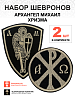Набор шевронов Хризма диаметр 9 см+Архангел Михаил высота 11 см, пришивной, черный/топленое молоко,