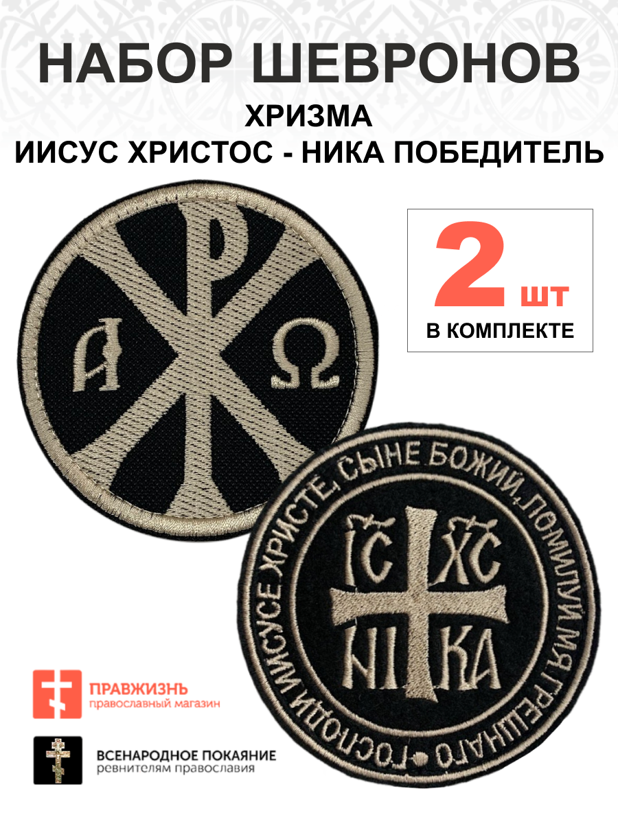 Набор шевронов ХРИЗМА + НИКА, на липучке, черный/топленое молоко, оксфорд, диаметр 9 см, 2 шт.