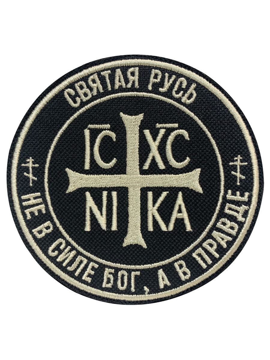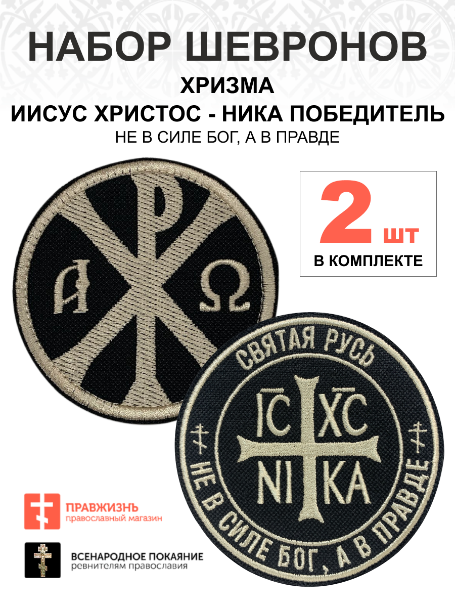 Набор шевронов ХРИЗМА + НИКА Не в силе Бог, а в правде, пришивной, черный/топленое молоко, оксфорд,