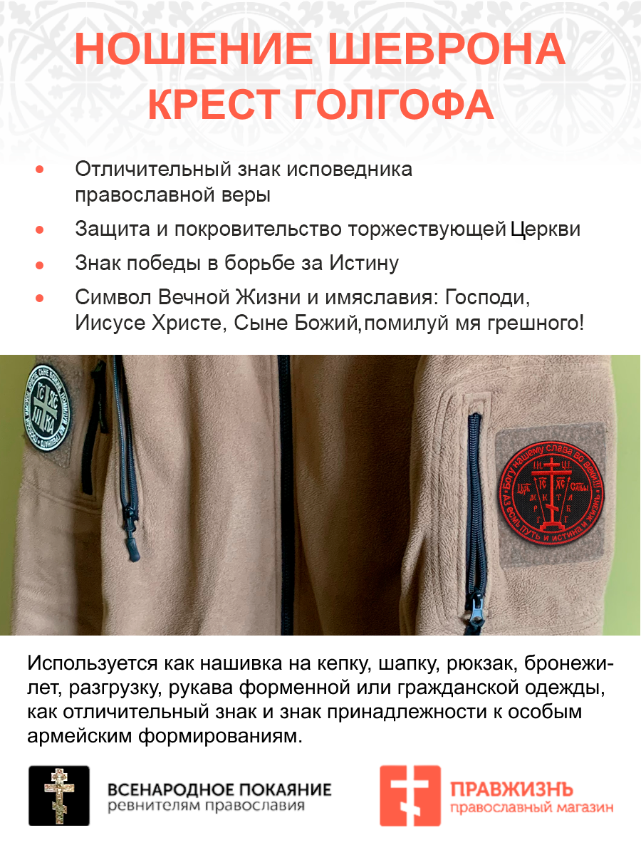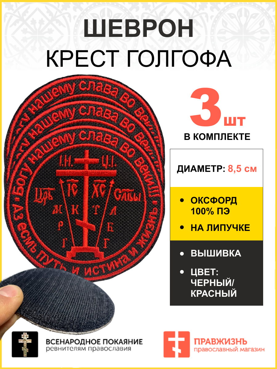 Набор шевронов Крест Аз есмь Путь и Истина и Жизнь на липучке черный/красный оксфорд диаметр 8,5 см