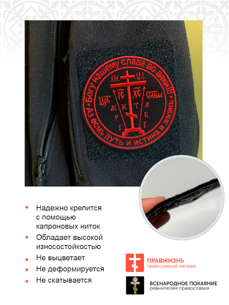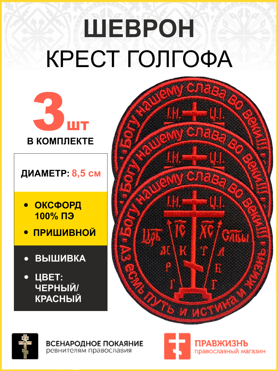 Набор шевронов Крест Аз есмь Путь и Истина и Жизнь пришивной черный/красный оксфорд диаметр 8,5 см 3