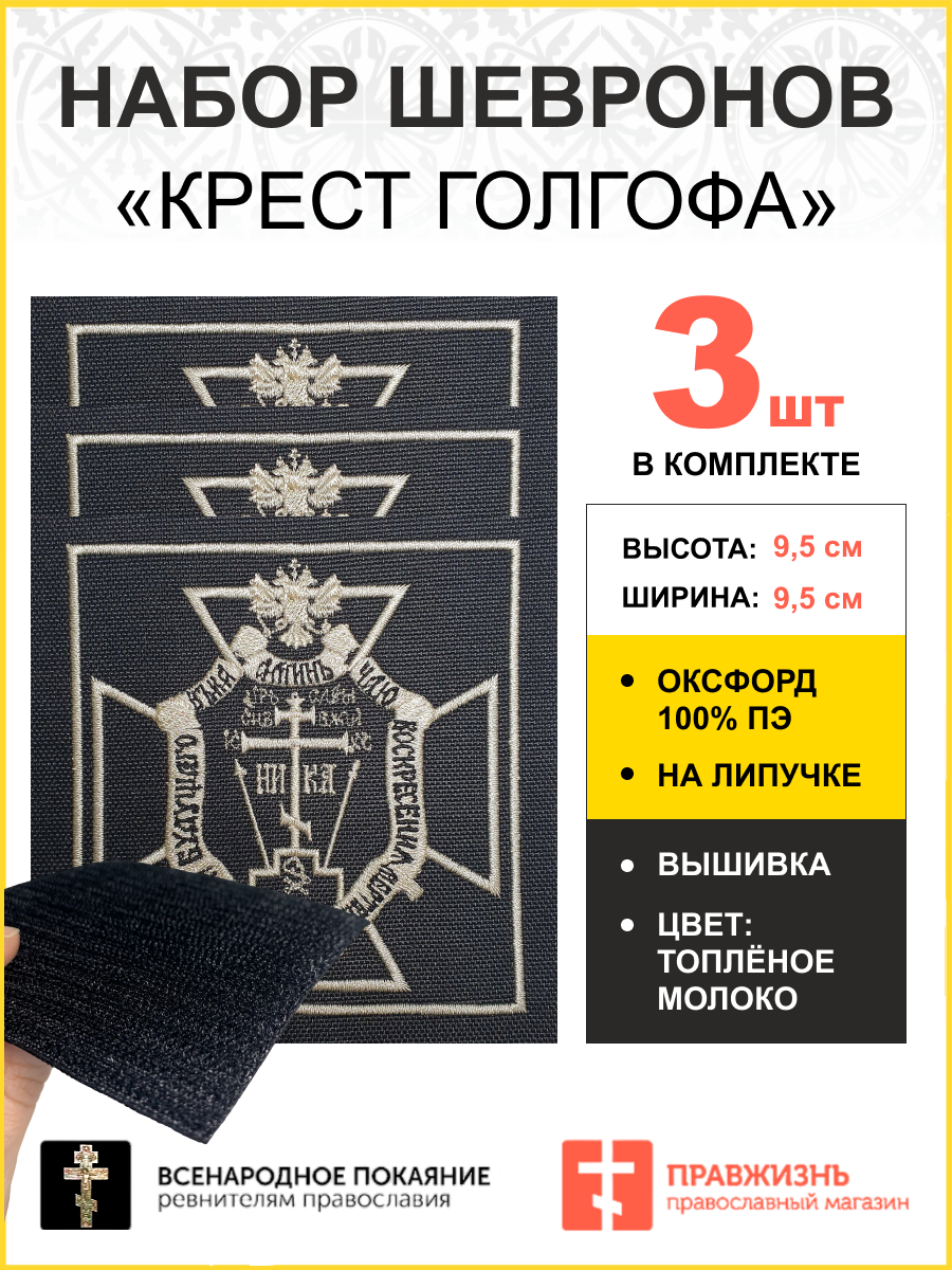 Шеврон Крест Голгофа липучка 9,5х9,5см чёрный/тм набор 3шт