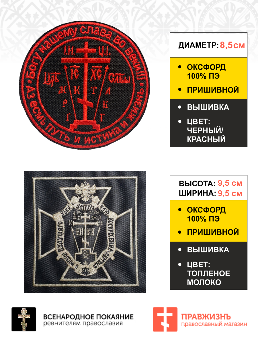 Набор шевронов Крест Голгофа пришивных, материал оксфорд, чёрный, нитка красная и топлёное молоко 2