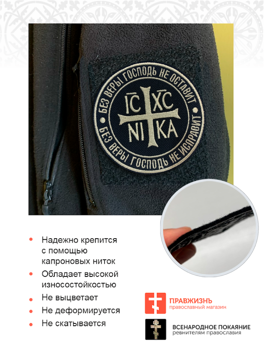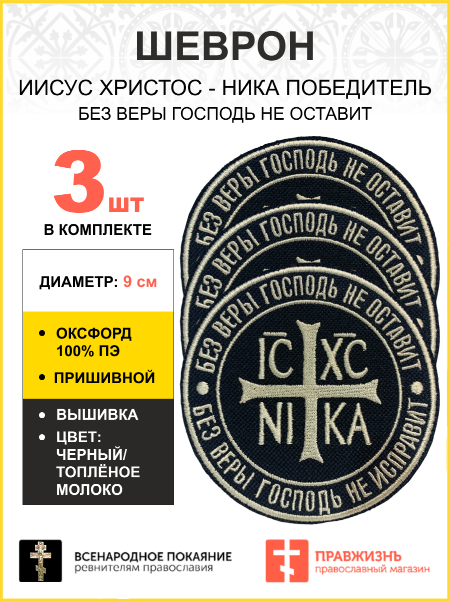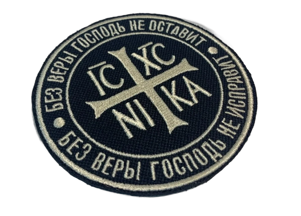 Набор шевронов НИКА Без веры Господь не оставит пришивной оксфорд цвет черный нитка топлёное молоко