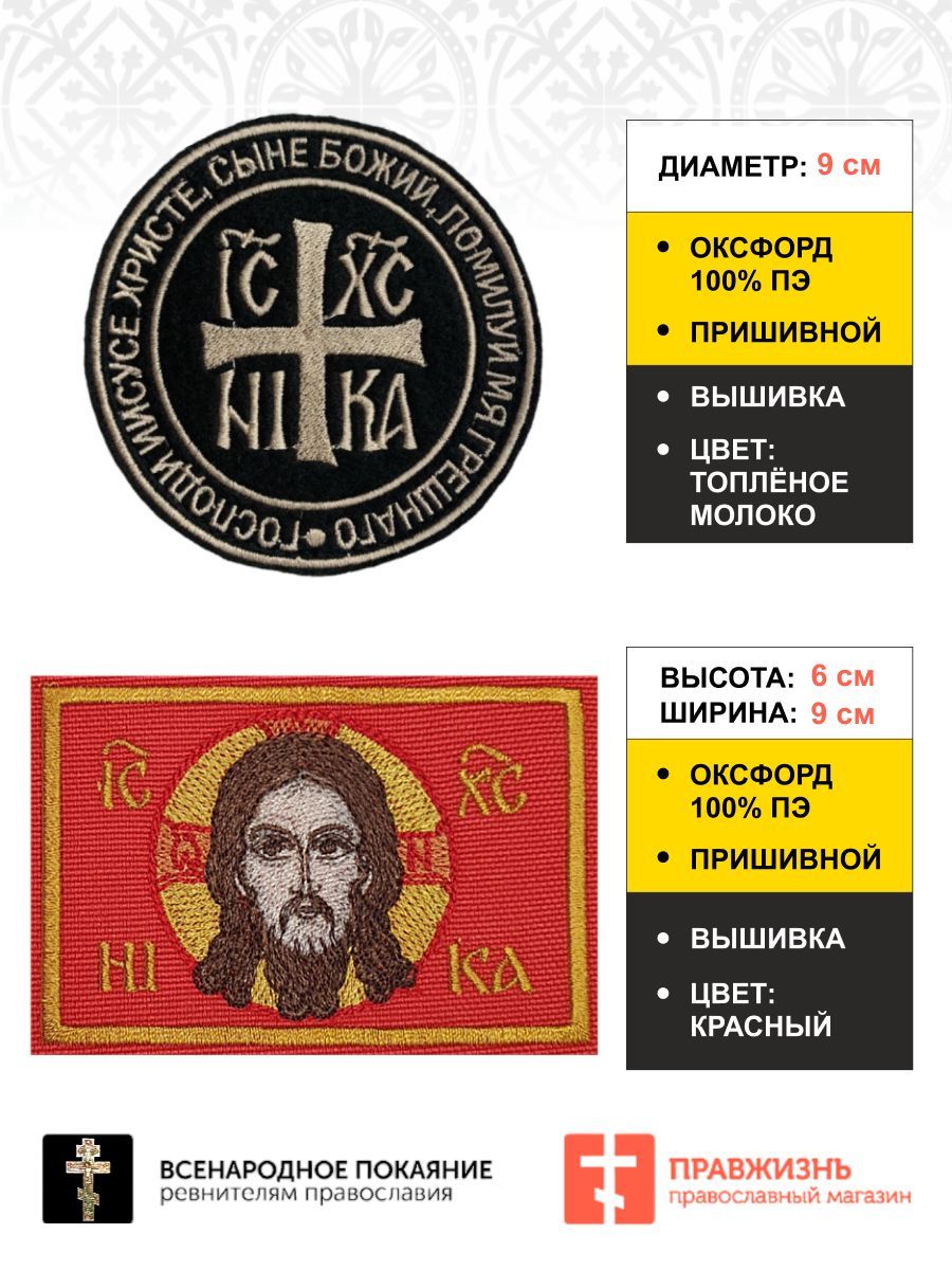 Набор шевронов Ника и Спас черный/красный пришивные 2 шт.