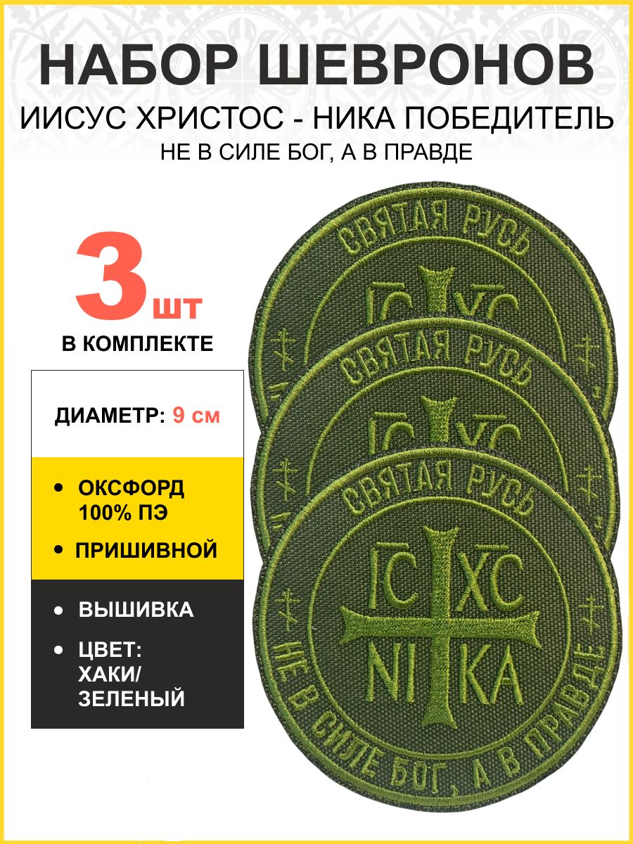 Набор шевронов Ника-Победитель Не в силе Бог, а в правде пришивной 9 см оксфорд хаки 3 шт