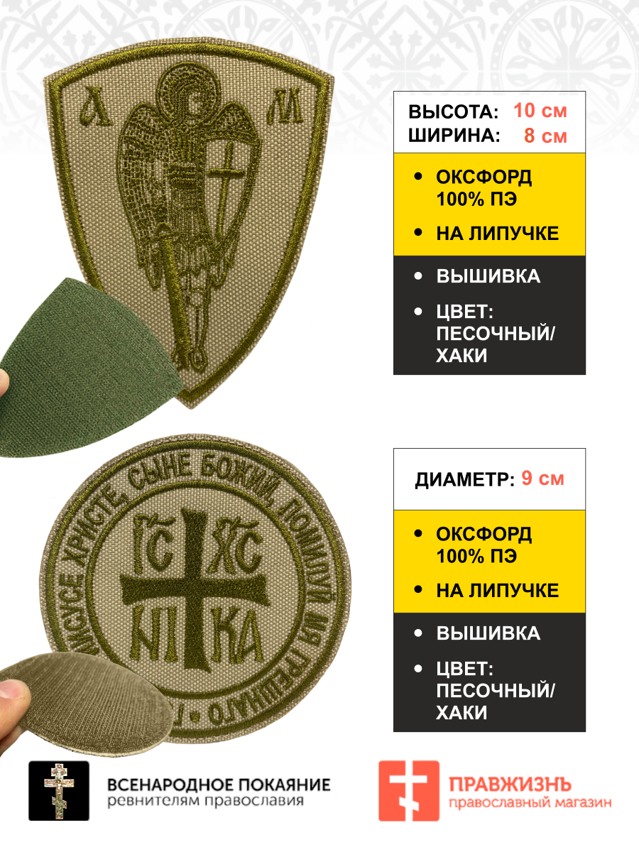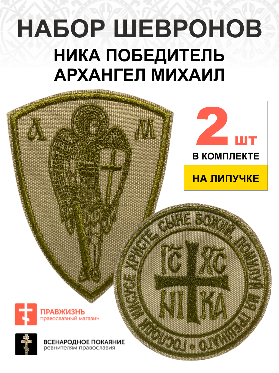 Набор шевронов НИКА-Победитель и Архангел Михаил песочный на липучке оксфорд 2 шт