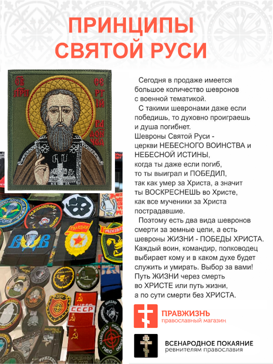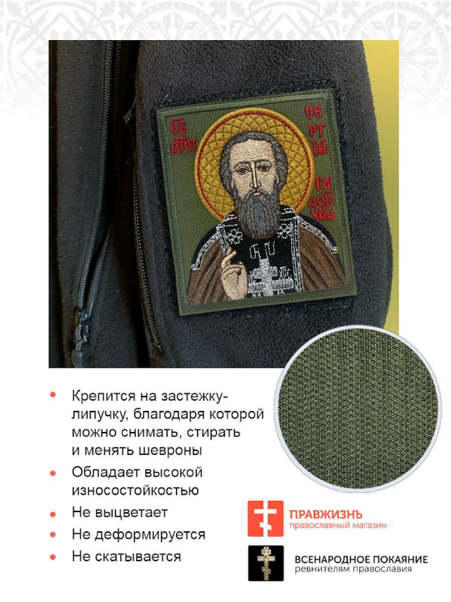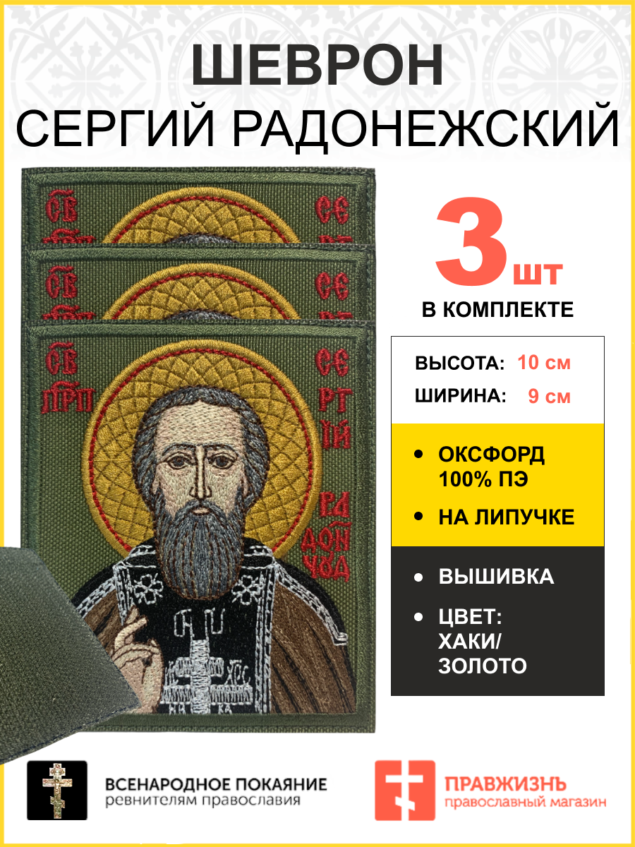 Набор шевронов Сергий Радонежский на хаки 9х10 на липучке оксфорд 3 шт