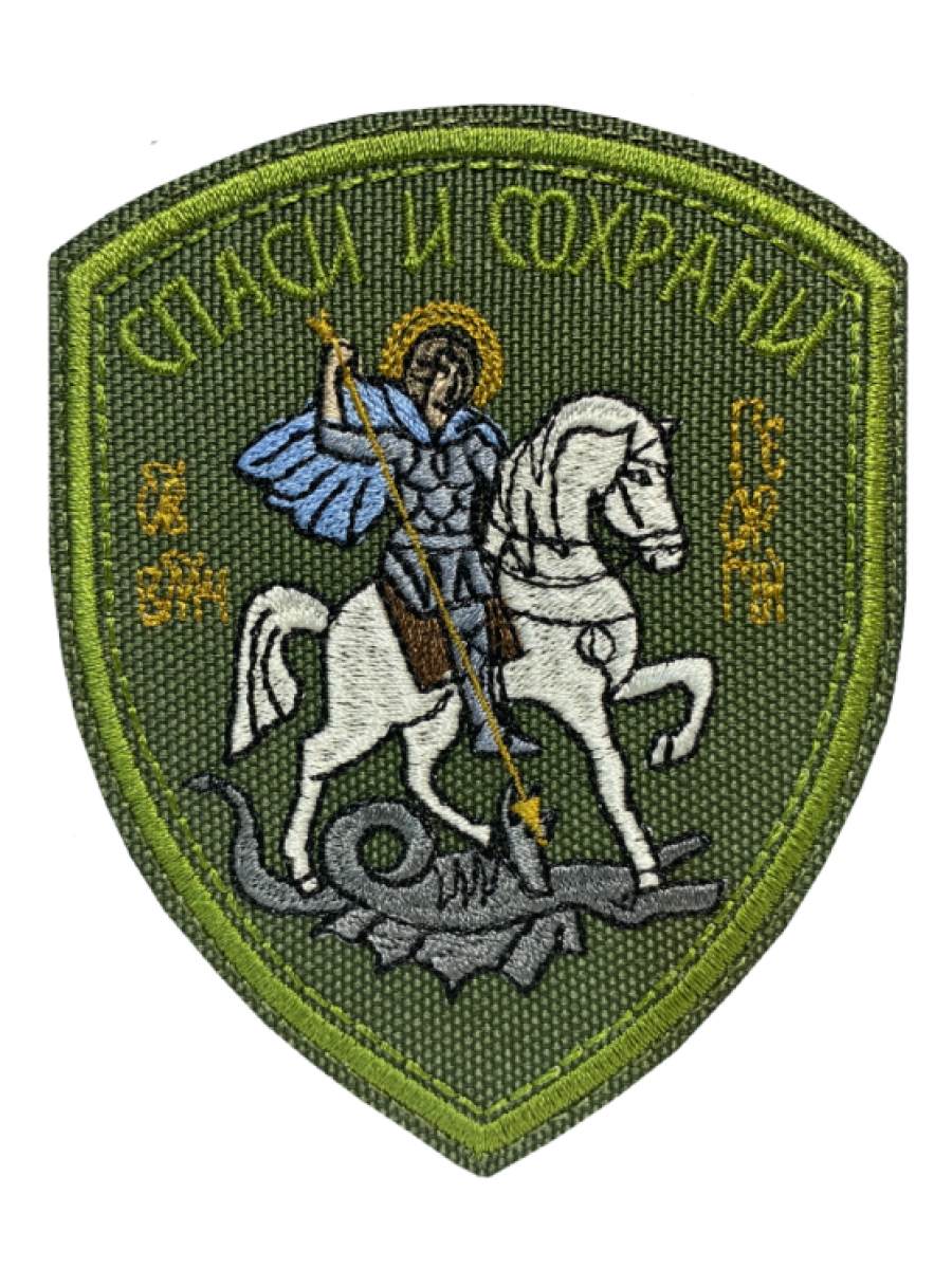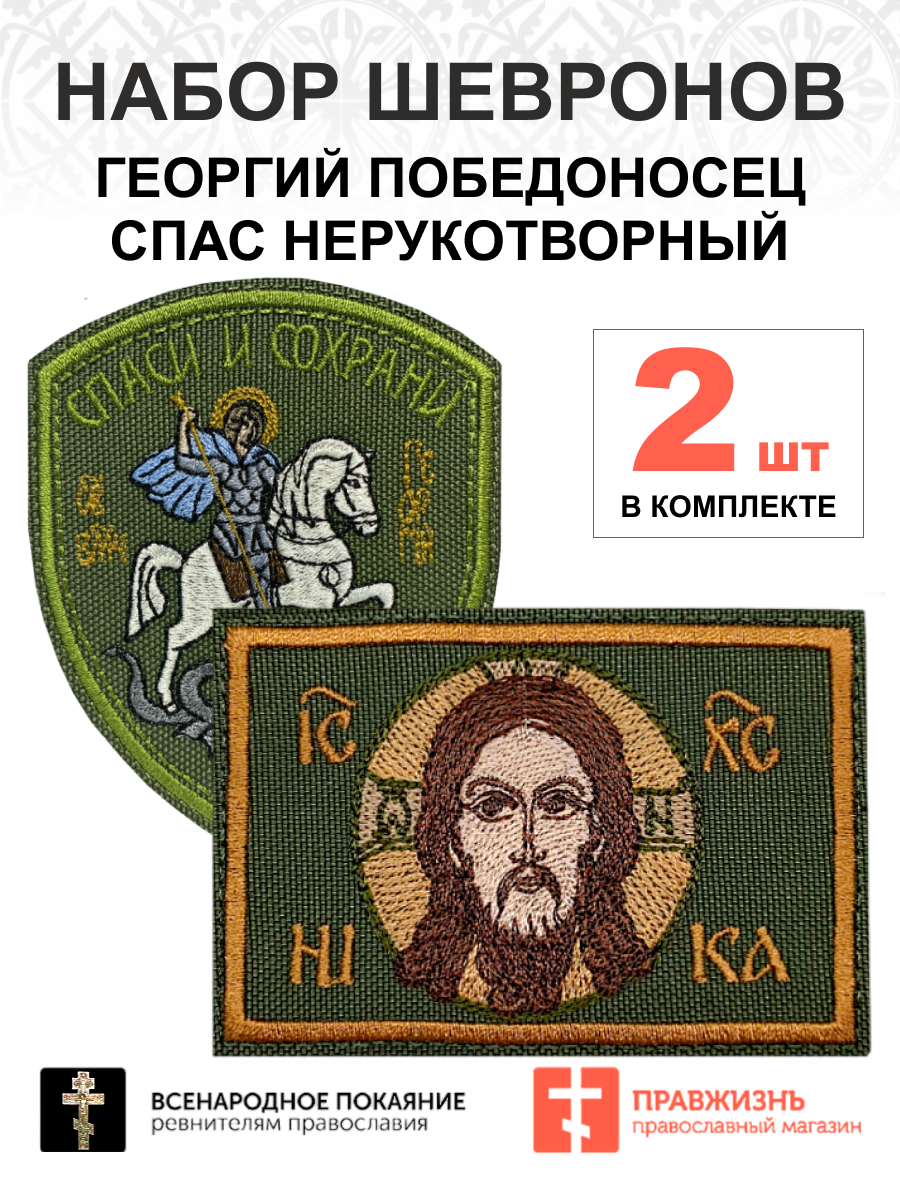 Набор шевронов СПАС 6х9 см + ГЕОРГИЙ ПОБЕДОНОСЕЦ высота 9 см, хаки, пришивной, оксфорд, 2 шт
