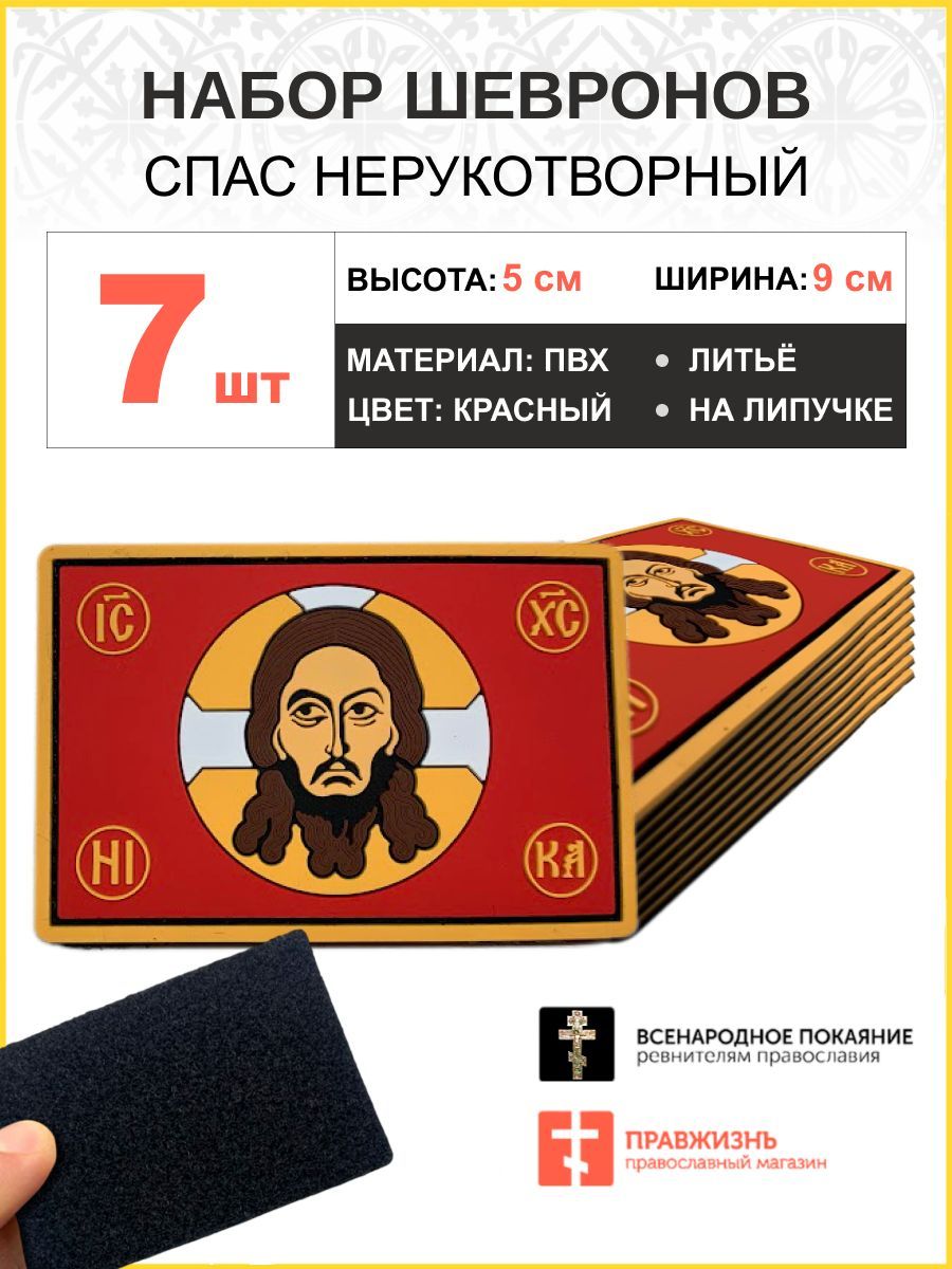 Набор шевронов Спас Нерукотворный ПВХ на липучке красный 7шт