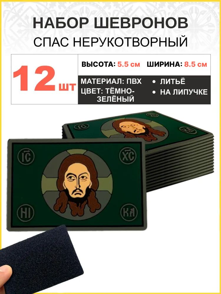 Набор шевронов Спас Нерукотворный ПВХ липучка т/зеленый 12шт