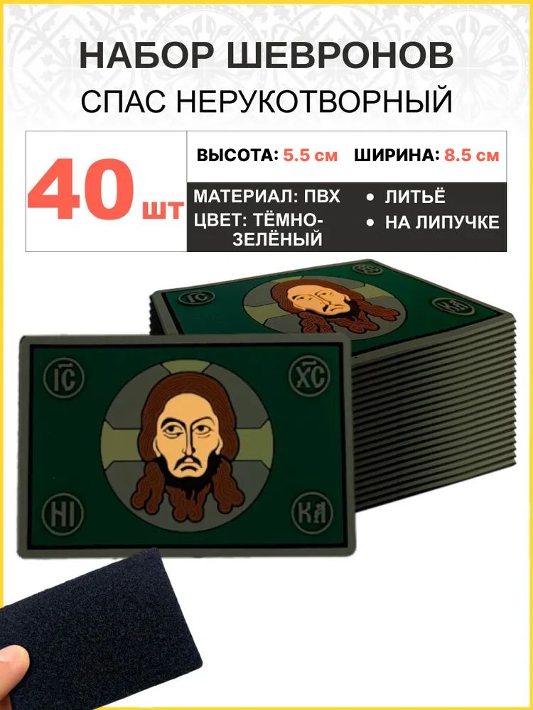 Набор шевронов Спас Нерукотворный ПВХ липучка т/зеленый 40шт