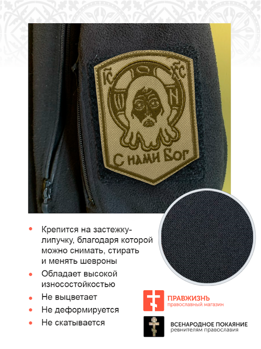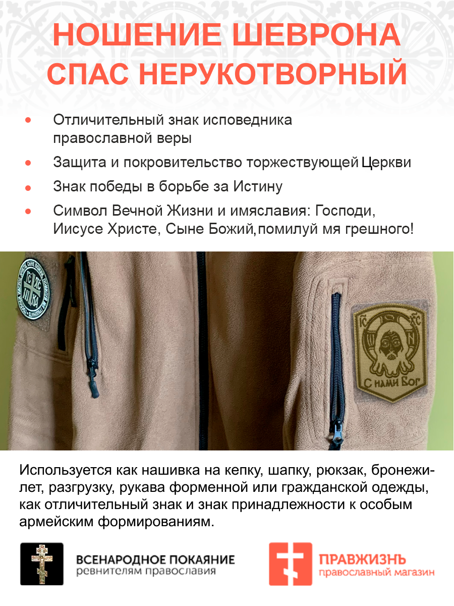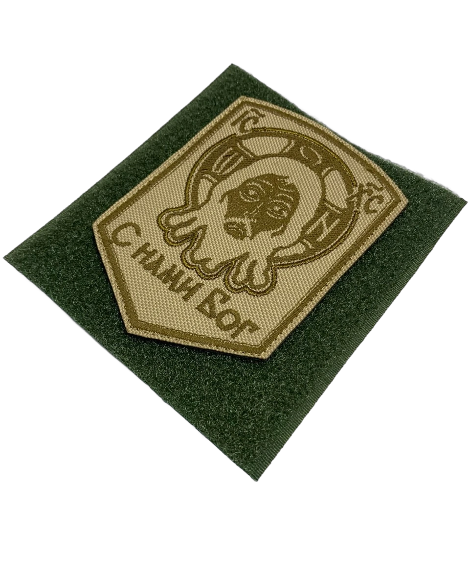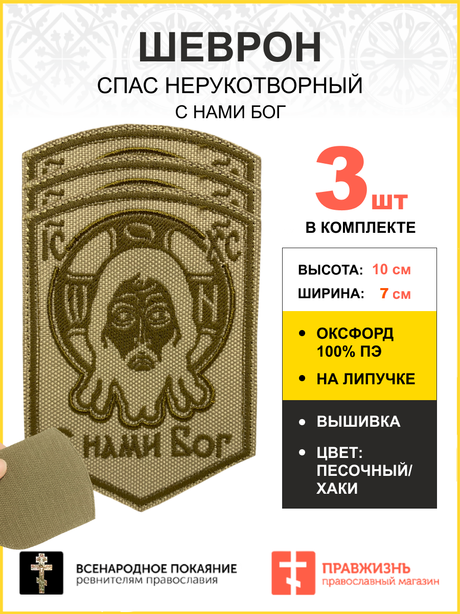 Набор шевронов Спас Нерукотворный С нами Бог на липучке песочный оксфорд высота 10 см 3 шт