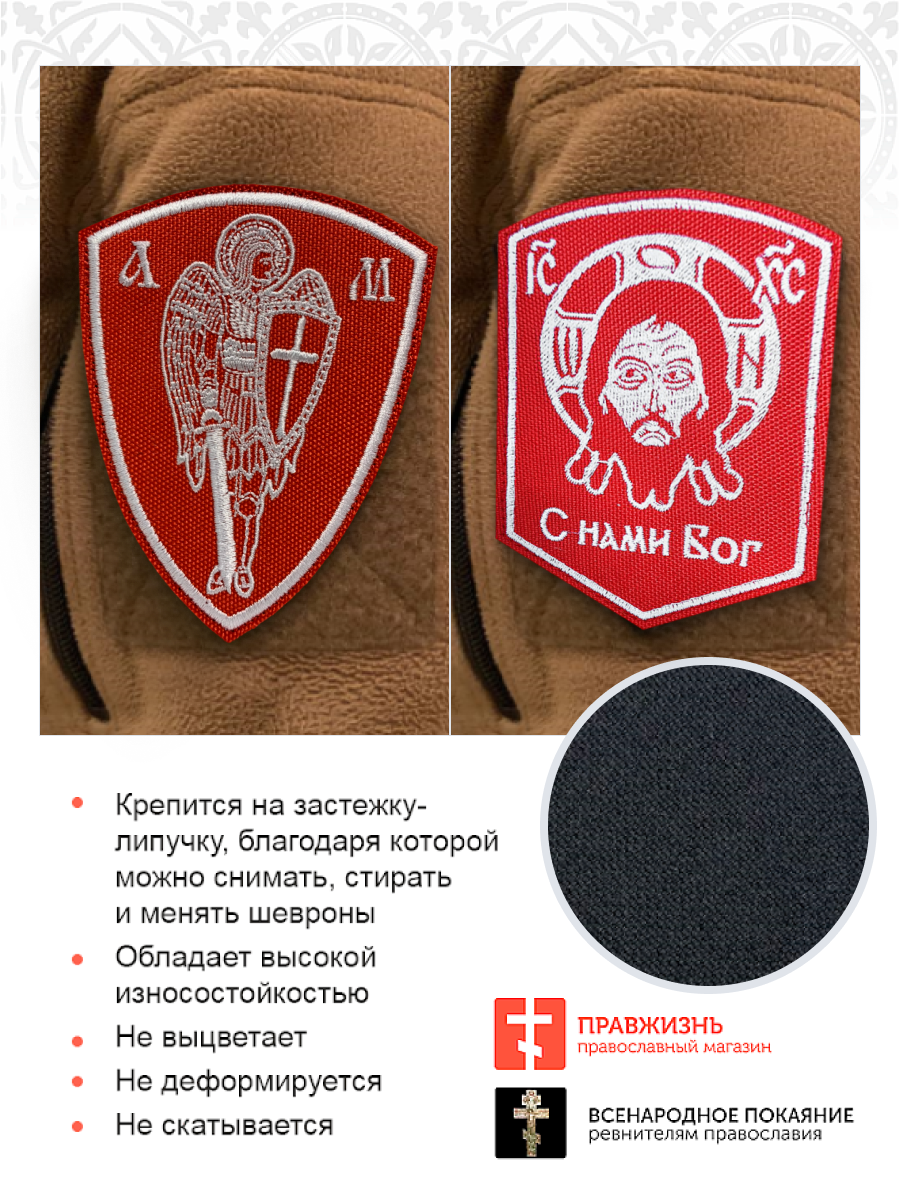 Набор шевронов Спас С нами Бог и Архангел Михаил красный/белый на липучке оксфорд 2 шт