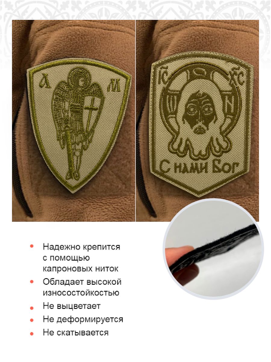 Набор шевронов Спас С нами Бог и Архангел Михаил песочный пришивные оксфорд 2 шт