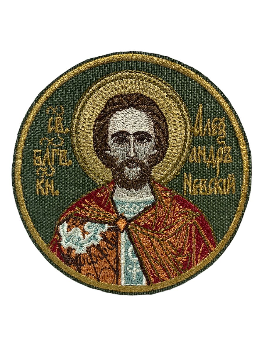 Шеврон Александр Невский в красном на липучке хаки оксфорд диаметр 9 см