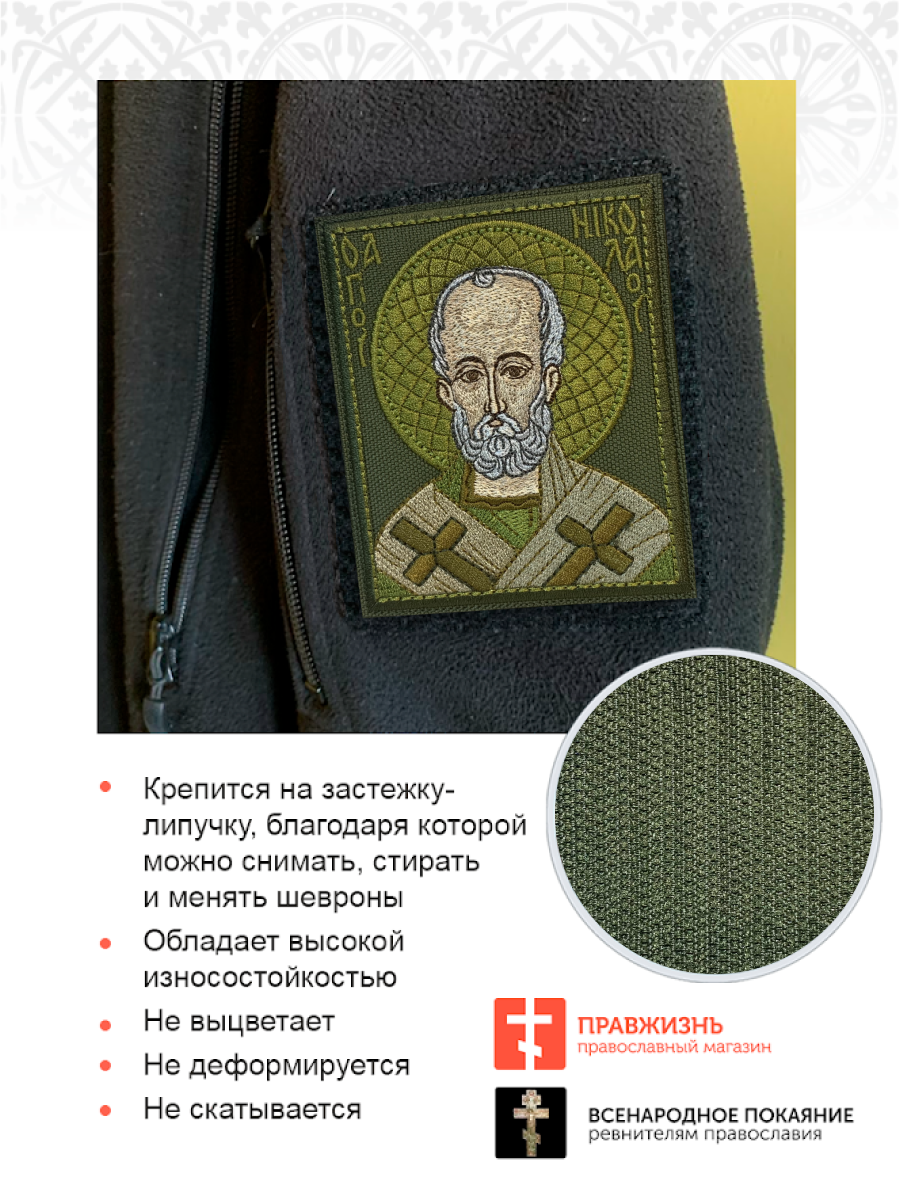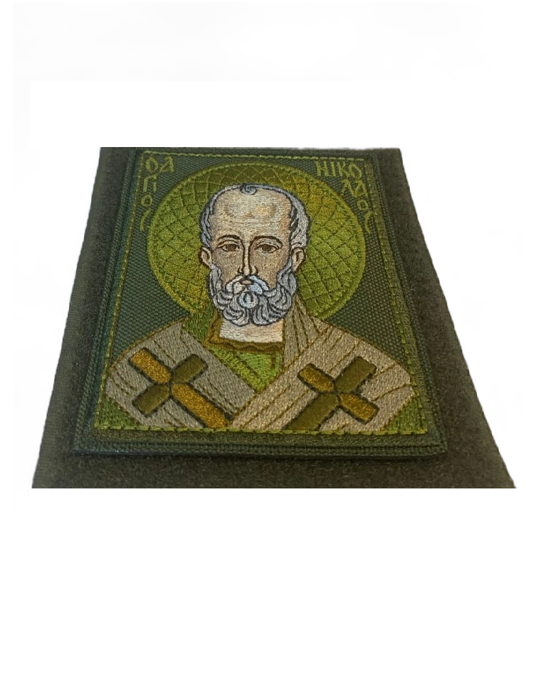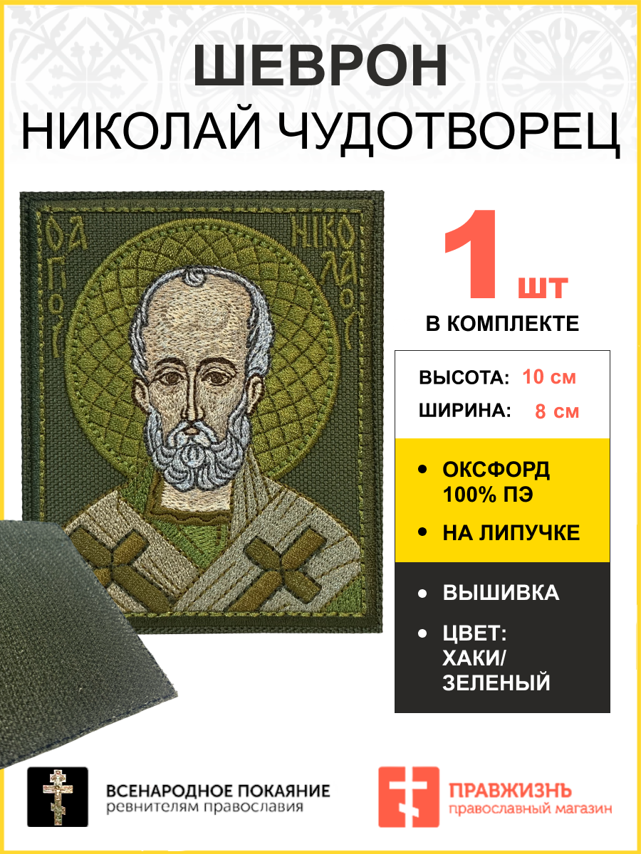 Шеврон Николай Чудотворец в зеленом на хаки 8х10 см на липучке оксфорд 1 шт