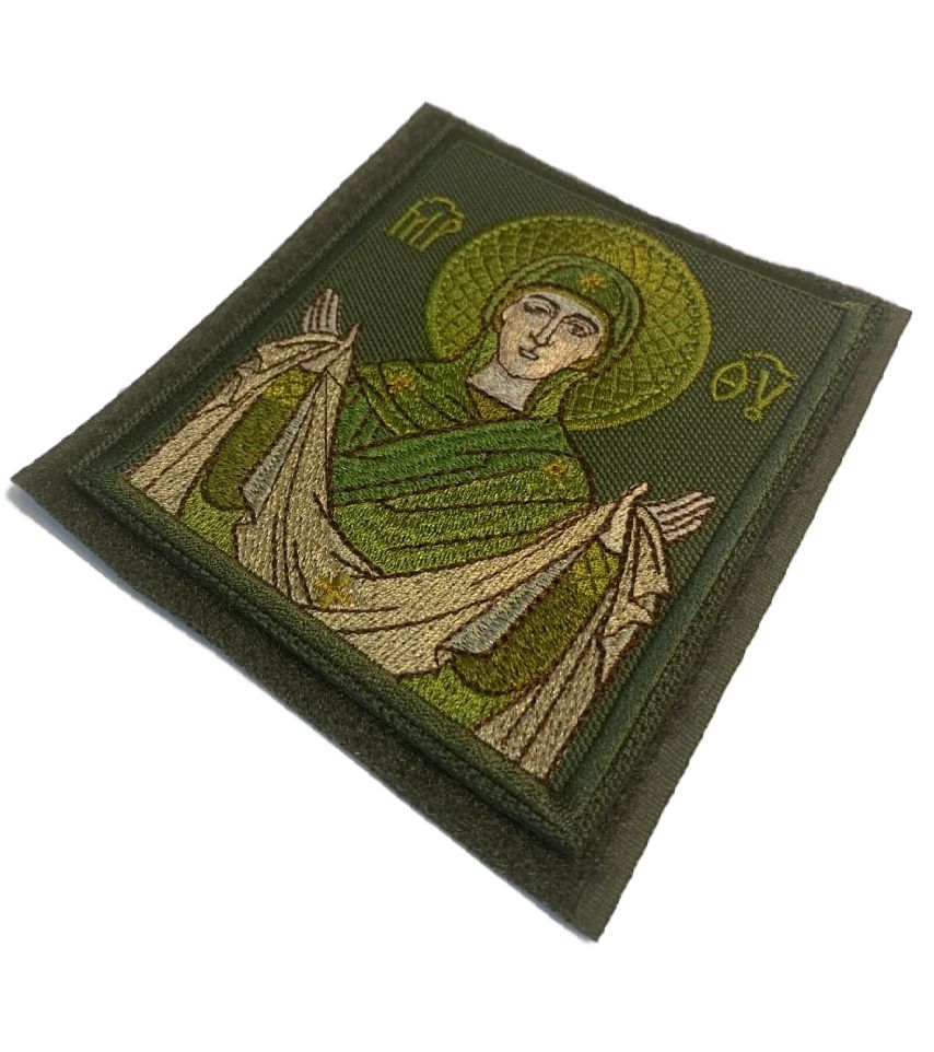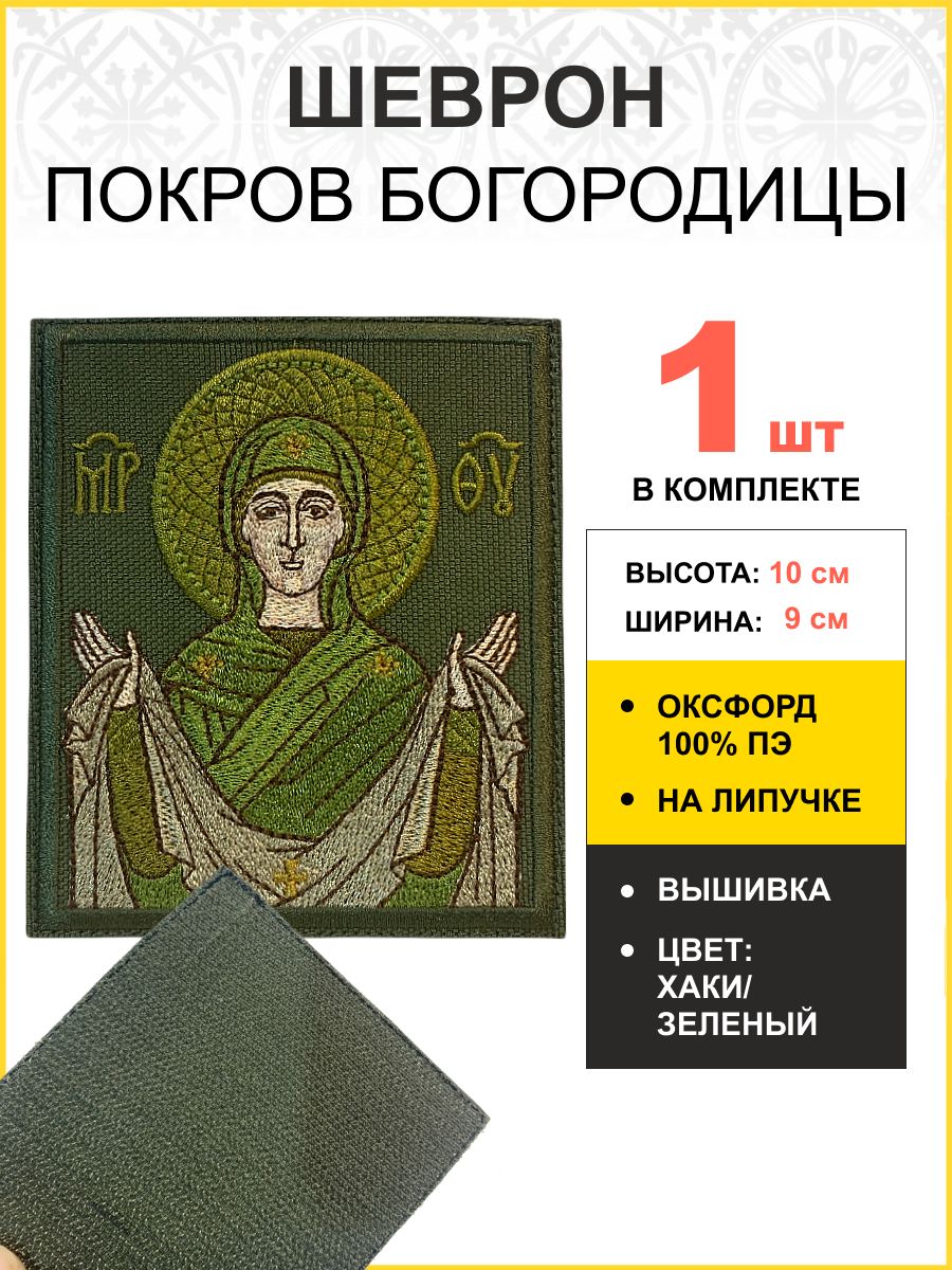 Шеврон Покров Богородицы в зеленом на хаки 9х10 см на липучке оксфорд 1 шт