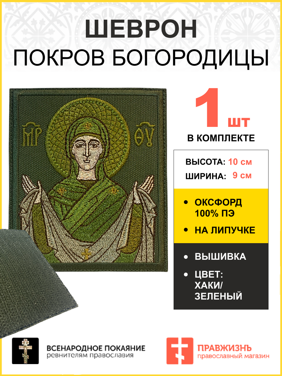 Шеврон Покров Богородицы в зеленом на хаки 9х10 см на липучке оксфорд 1 шт