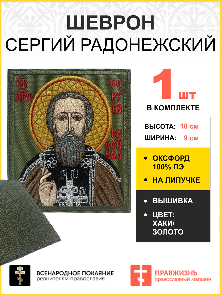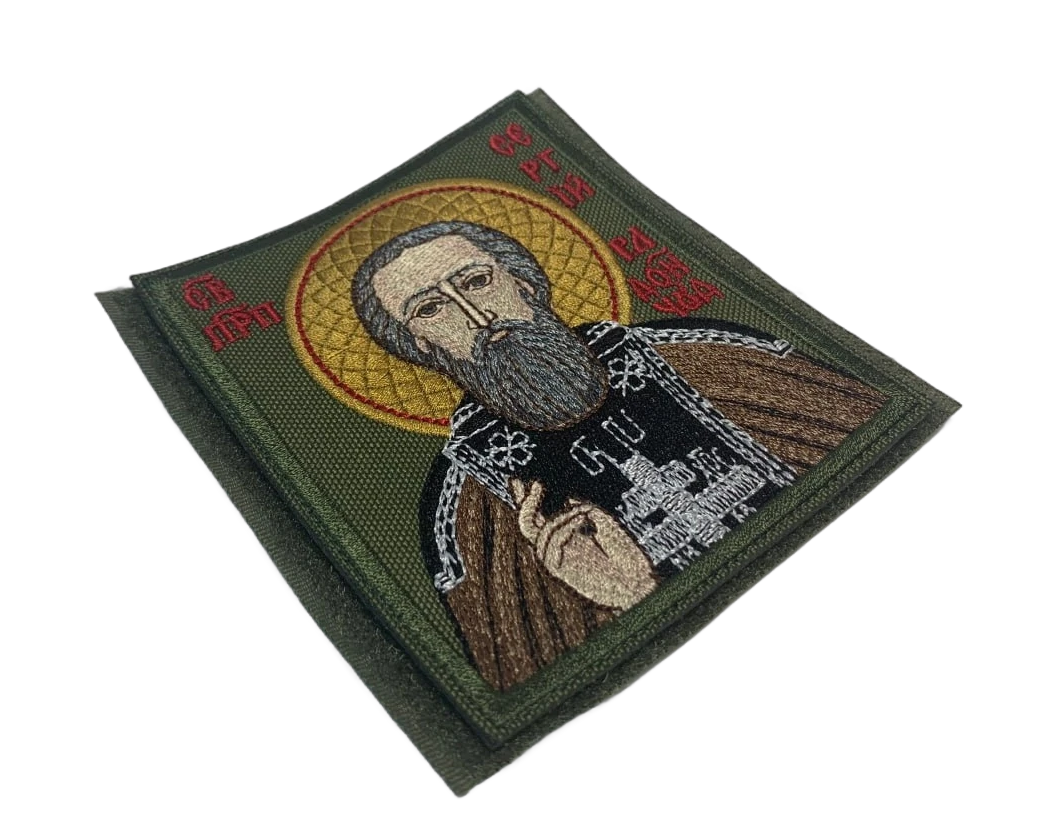 Шеврон Сергий Радонежский на хаки 9х10 на липучке оксфорд.