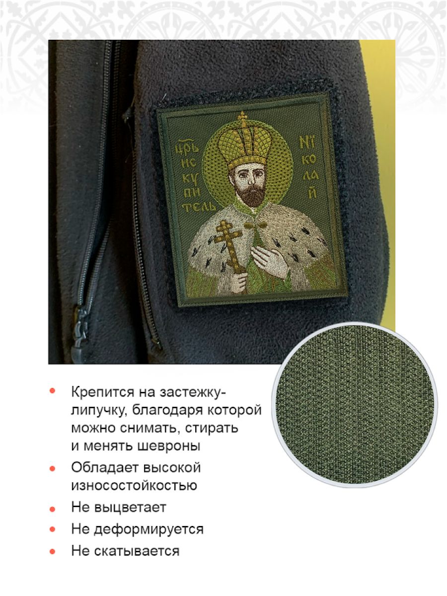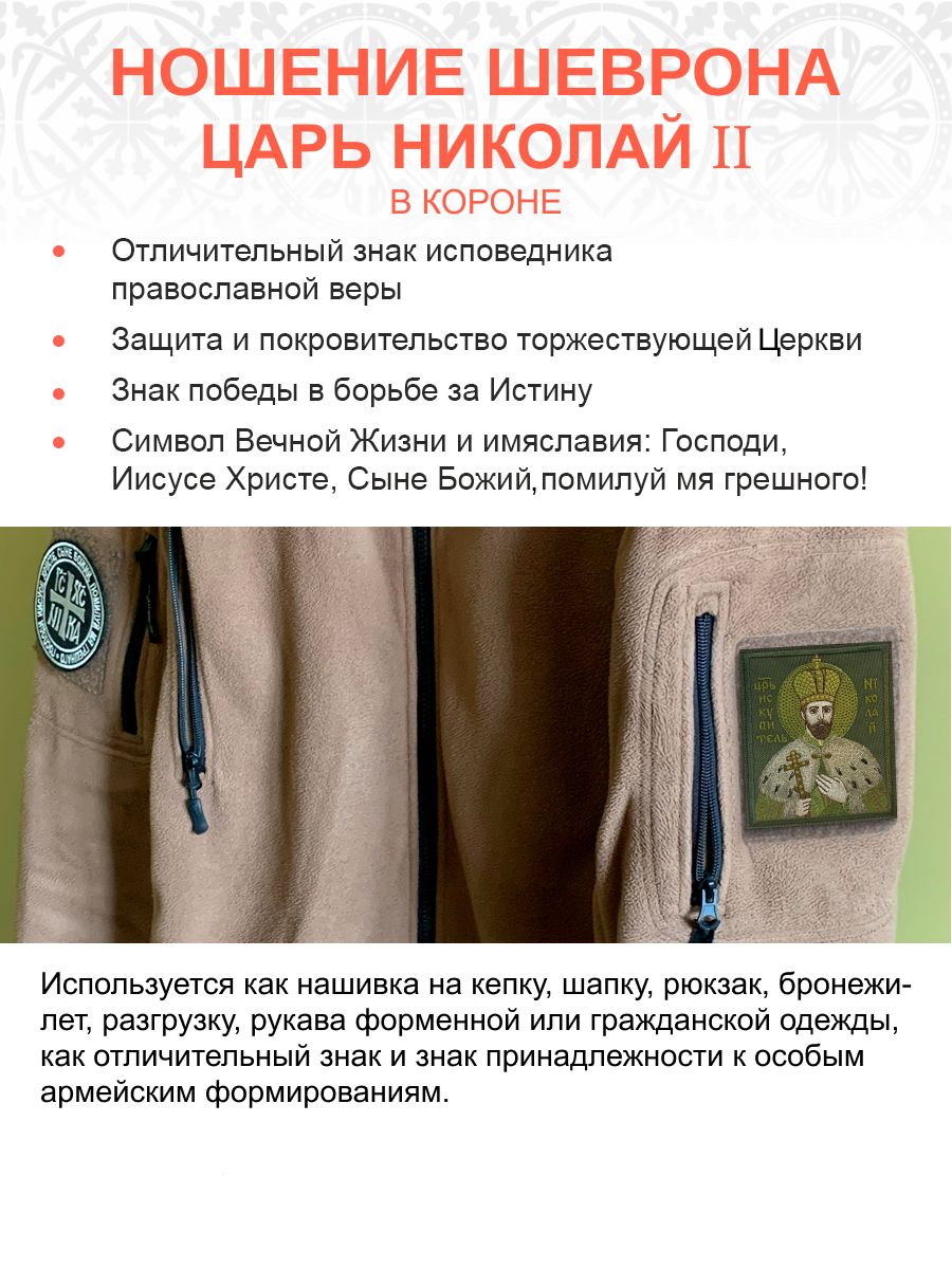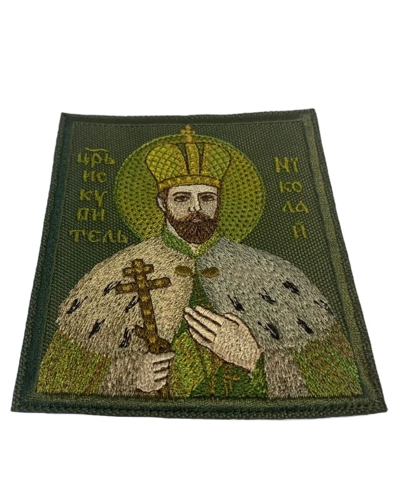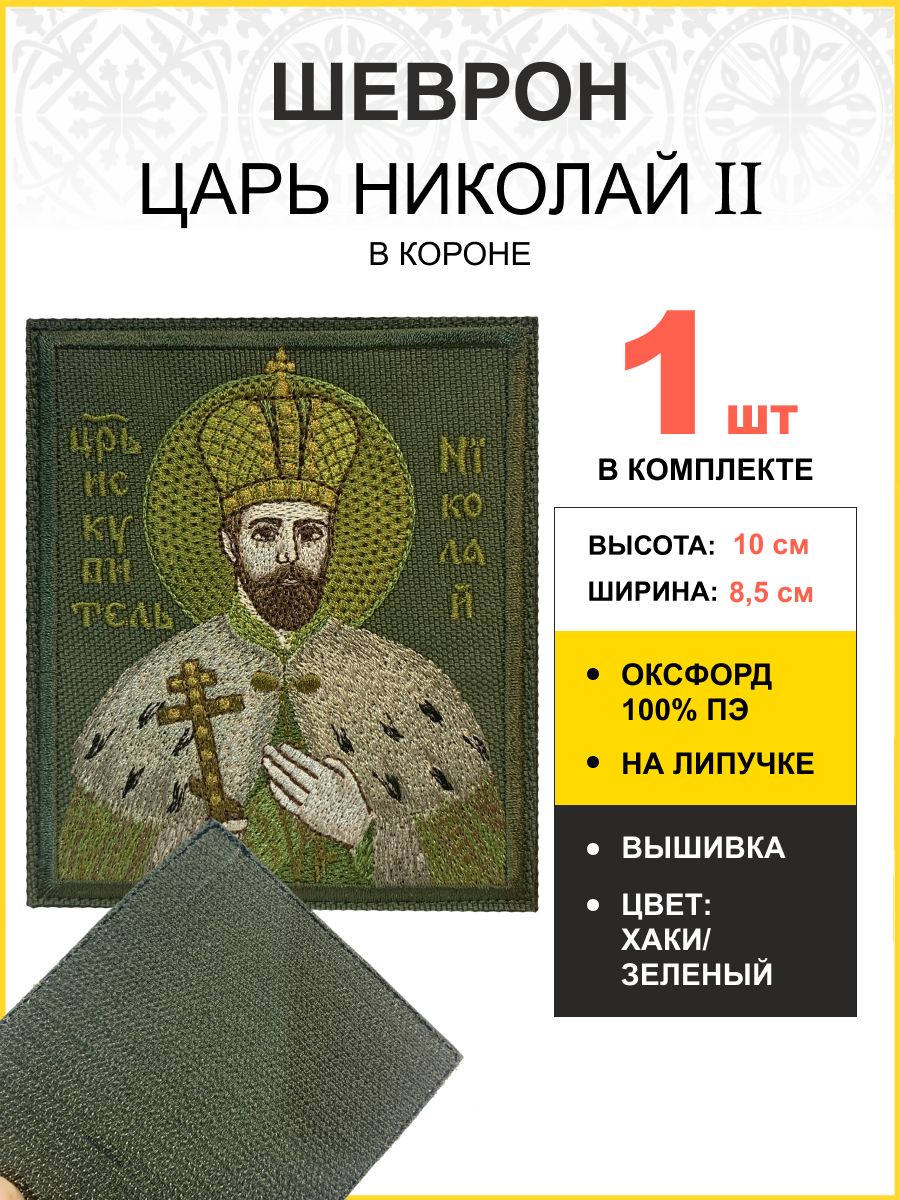 Шеврон Царь Николай в короне в зеленом на хаки на липучке оксфорд 8,5х10 см 1 шт