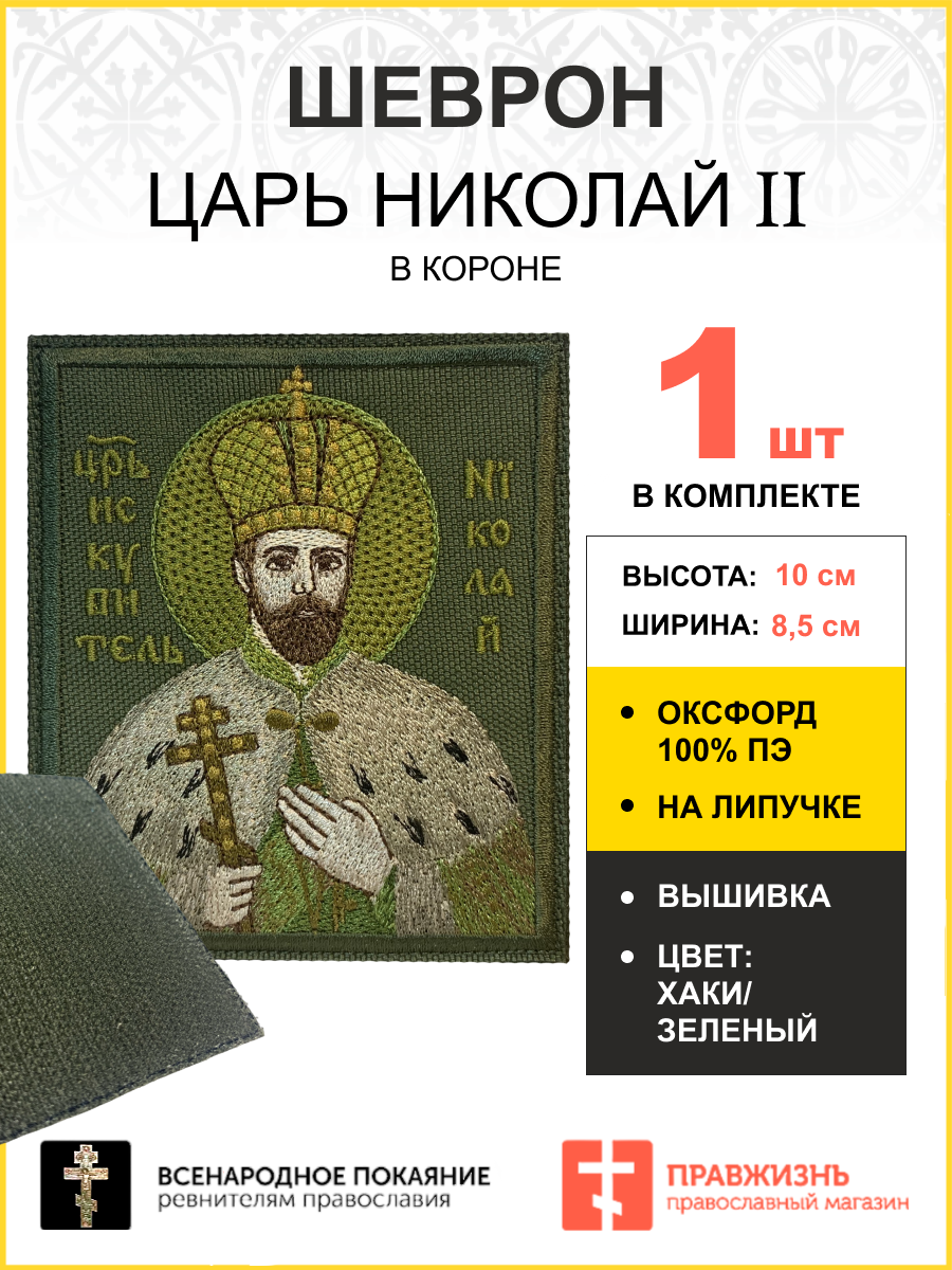 Шеврон Царь Николай в короне в зеленом на хаки на липучке оксфорд 8,5х10 см 1 шт