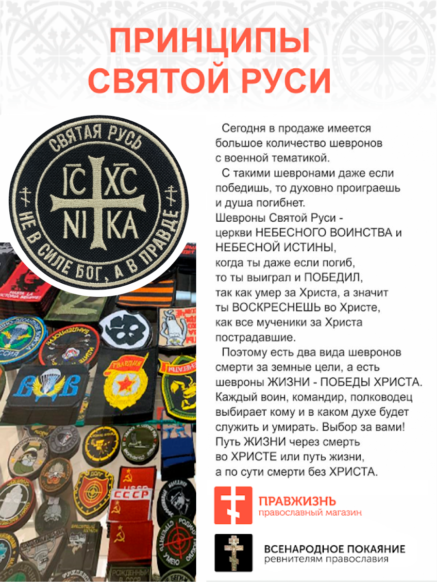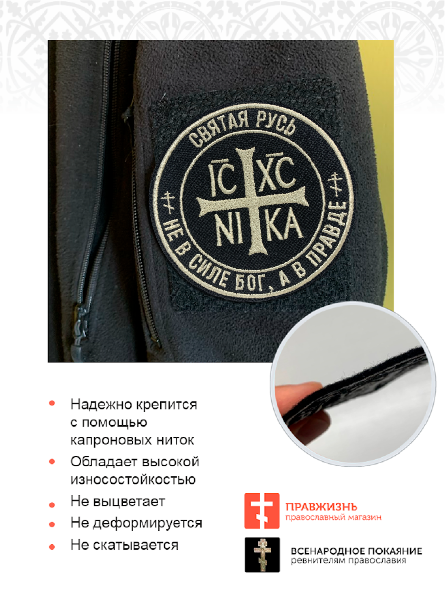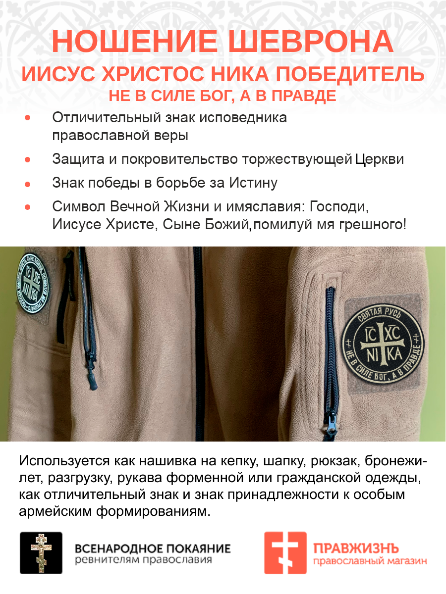 Шеврон Ника-Победитель Не в силе Бог, а в правде пришивной 9 см, материал оксфорд, черный, нитка топленое молоко 1 шт