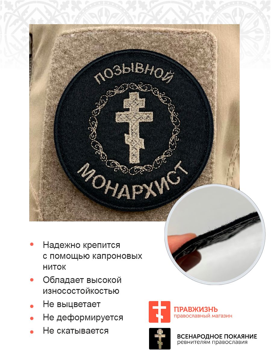 Позывной Монархист Крест, шеврон военный православный, пришивной, нитка топленое молоко, материал фе