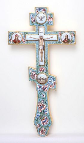 Крест напрестольный филигрань, эмаль, роспись, 5-финифтей / золочение